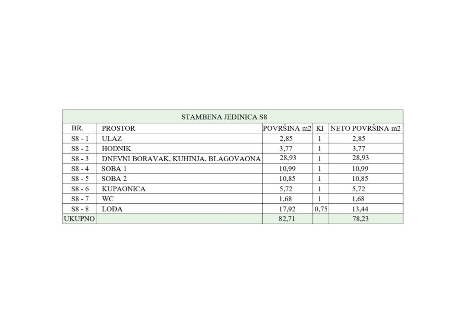 Okvirni izračun za stan S8: NKP 64,79m2 + lođa 17,92m2