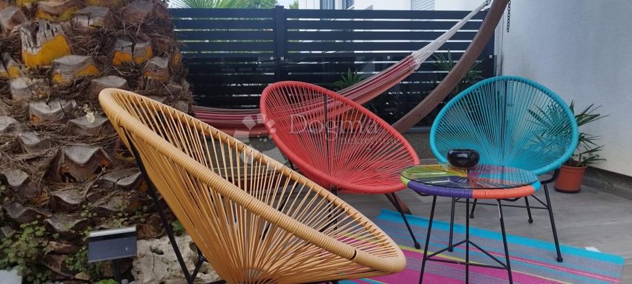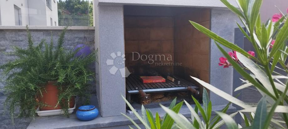 Apartman se sastoji od ulaznog prostora, spremišta, kupaonice, dvije spavaće sobe, kuhinje s blagovaonicom i dnevnog boravka koji vodi na terasu i uređenu okućnicu od 47 m2 s roštiljem i tušem.