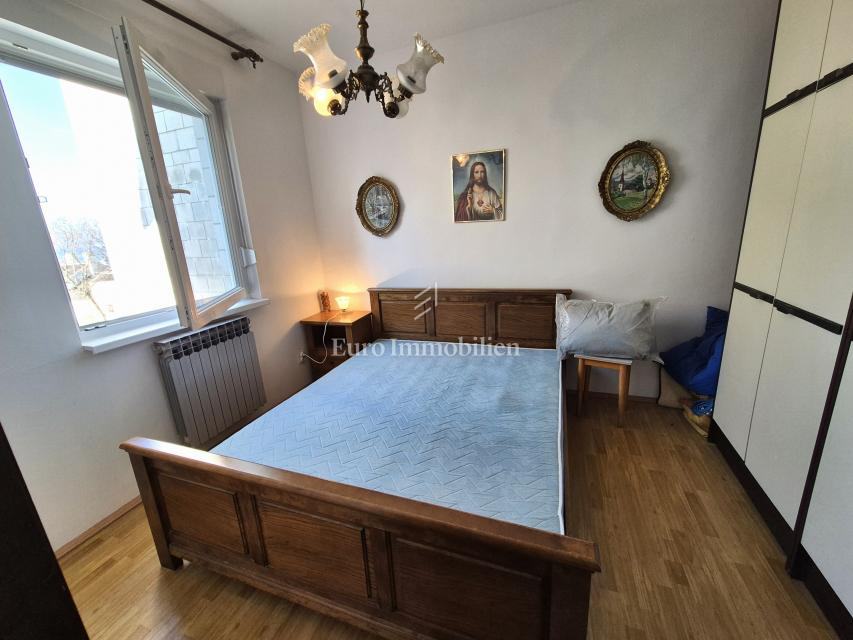 Apartman se nalazi na visokom prizemlju stambene zgrade i sastoji se ulaznog hodnika, dnevnog boravka s blagovaonom, kuhinje s ostavom, kupaonice, spavaće sobe i loggie. Renovirane su podne obloge i kupaonica. Apartman se prodaje namješten i spreman za korištenje. Parking je moguć na javnoj površini.