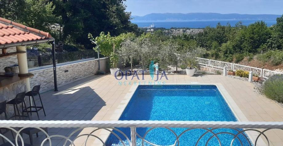 Njivice/Krk, TOP kuća sa bazenom i pogledom na more, sa garažom i grijanjem te ljetnom kuhinjom na prodaju.