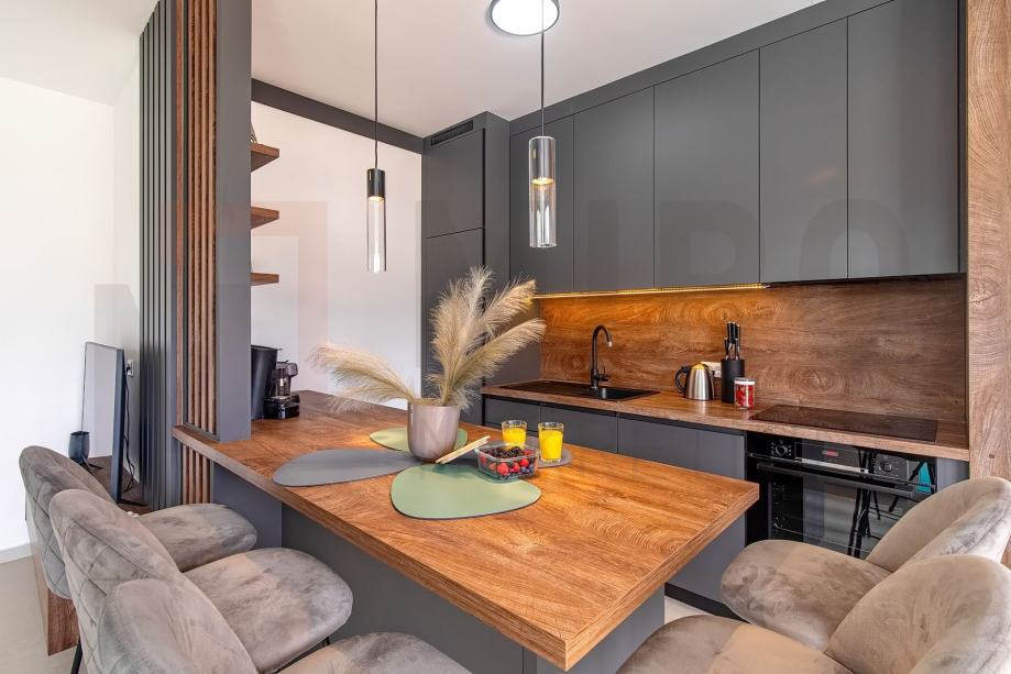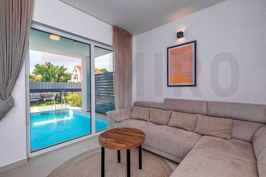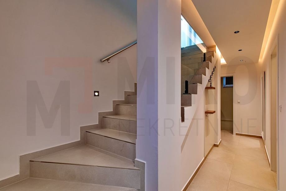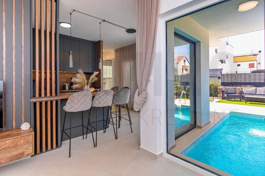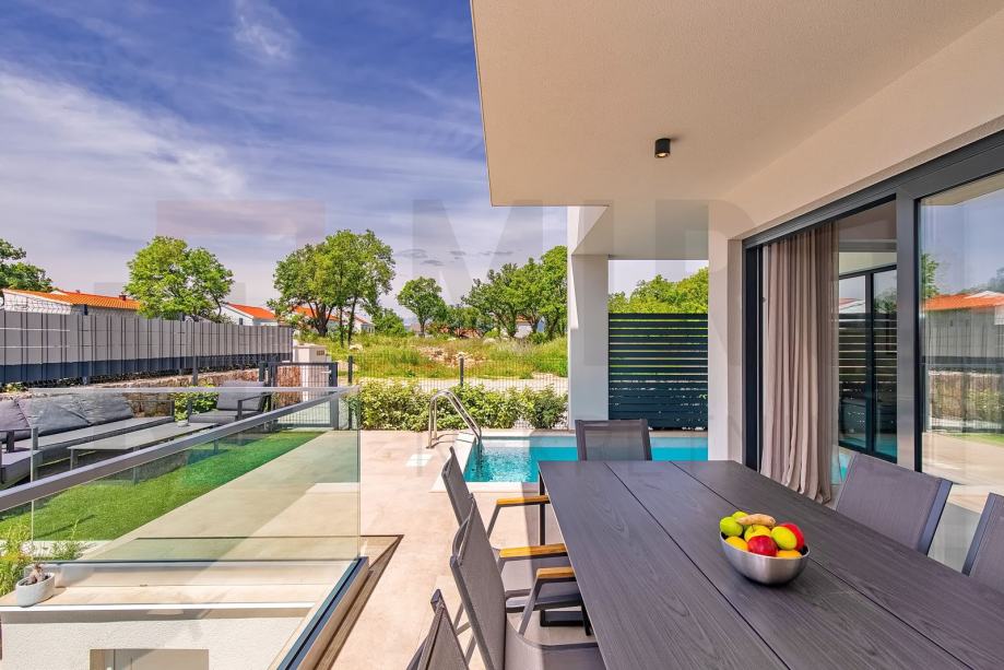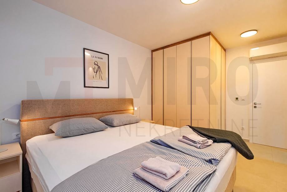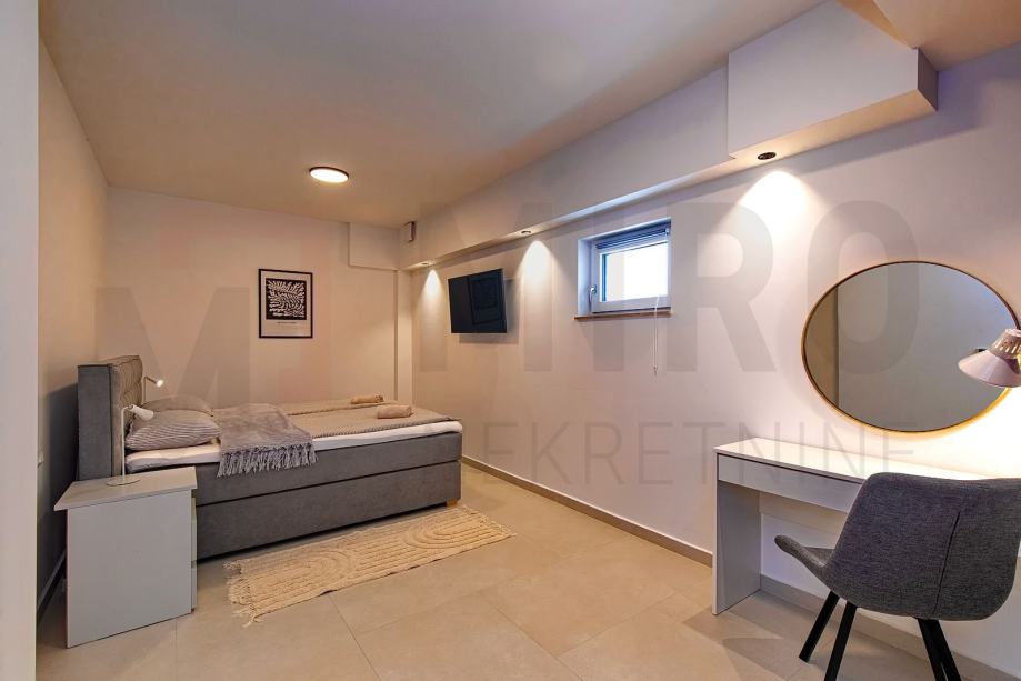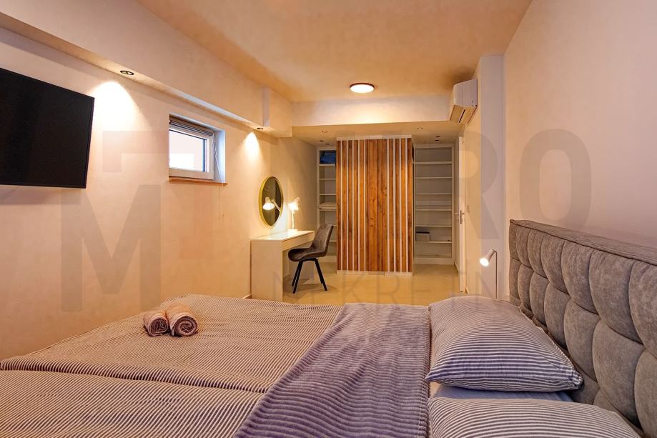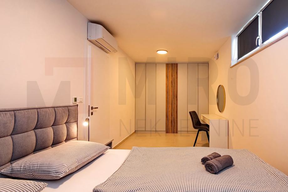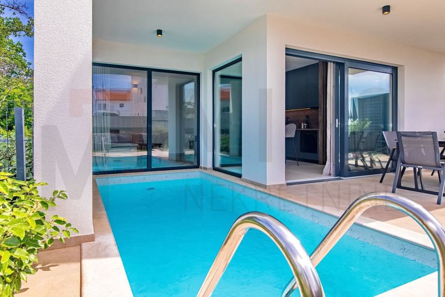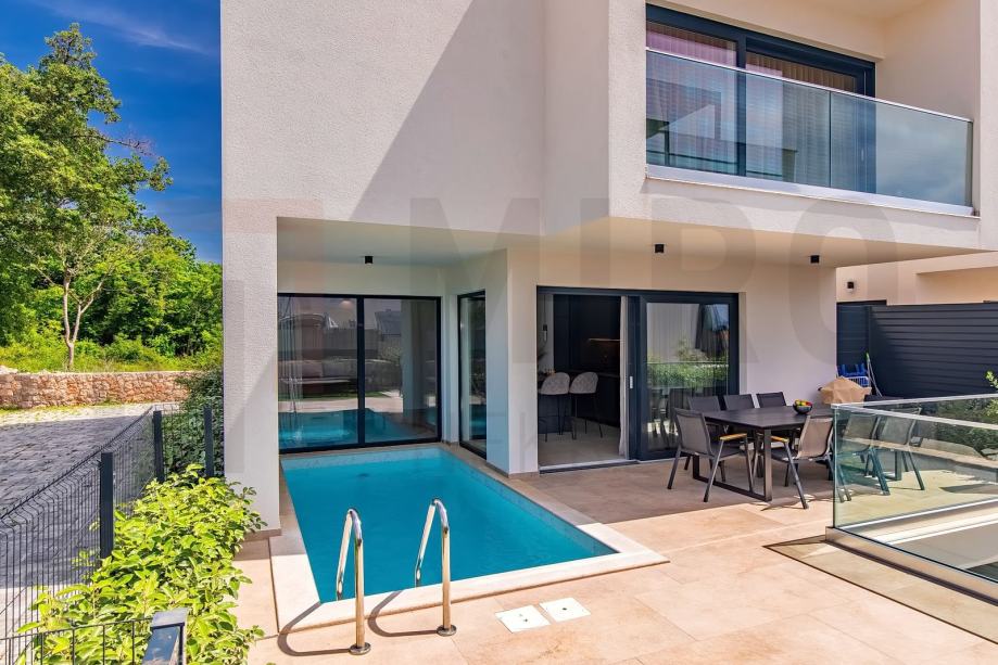 Otok Krk, Njivice, novi komforni dvoetažni apartman s bazenom i okućnicom. Ukupna površina apartmana iznosi 92 m², raspoređena je na dvije etaže: podrum i prizemlje. U podrumu se nalaze dvije spavaće sobe, od kojih master spavaća soba ima vlastitu kupaonicu i garderobni prostor, te dodatna kupaonica i praktična ostava/vešeraj.U prizemlju se prostire dnevni boravak koji se sastoji od kuhinje, blagovaonice i dnevnog boravka, otvorenog prema terasi koja djelomično je natkrivena, pružajući savršen spoj unutarnjeg i vanjskog prostora. Terasa s bazenom, uz nevjerojatan pogled na more. Apartman je moderno namješten, opremljen kvalitetnom PVC stolarijom, vrhunskim keramičkim podovima, podnim grijanjem i dodatnom klimatizacijom prostorija. Uz apartman dolaze i dva osigurana parkirna mjesta. Apartman je u vlasništvu fizičke osobe i kupac je u obvezi plaćanja poreza na promet nekretnine u visini 3%. Prodavatelj nekretnine jamči urednu vlasničku dokumentaciju. Posjetite nas i pronađite kvadrat vašeg doma!