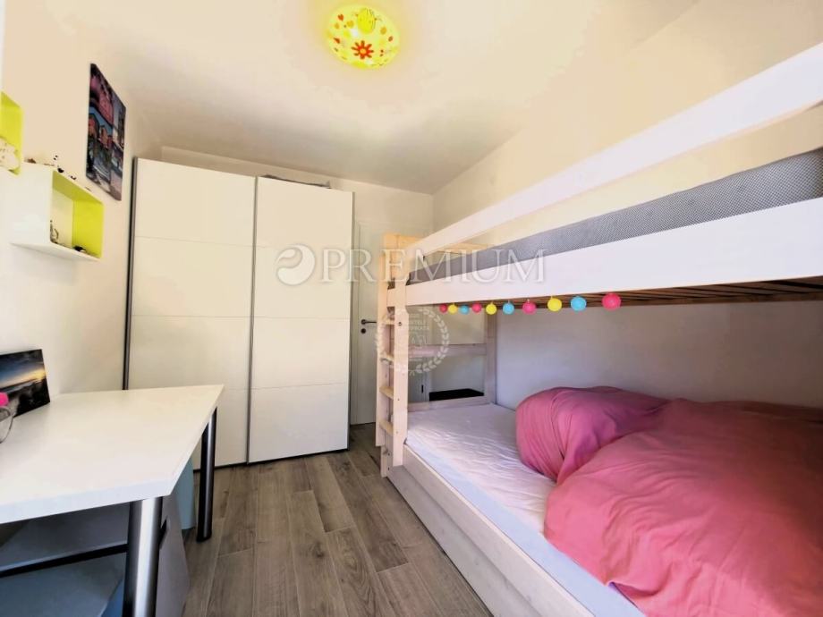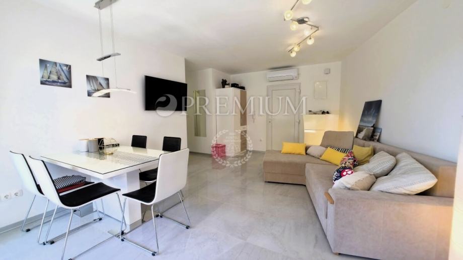 Apartman ima prekrasan pogled na more, te se prodaje namješten, s uključenim namještajem u cijenu.