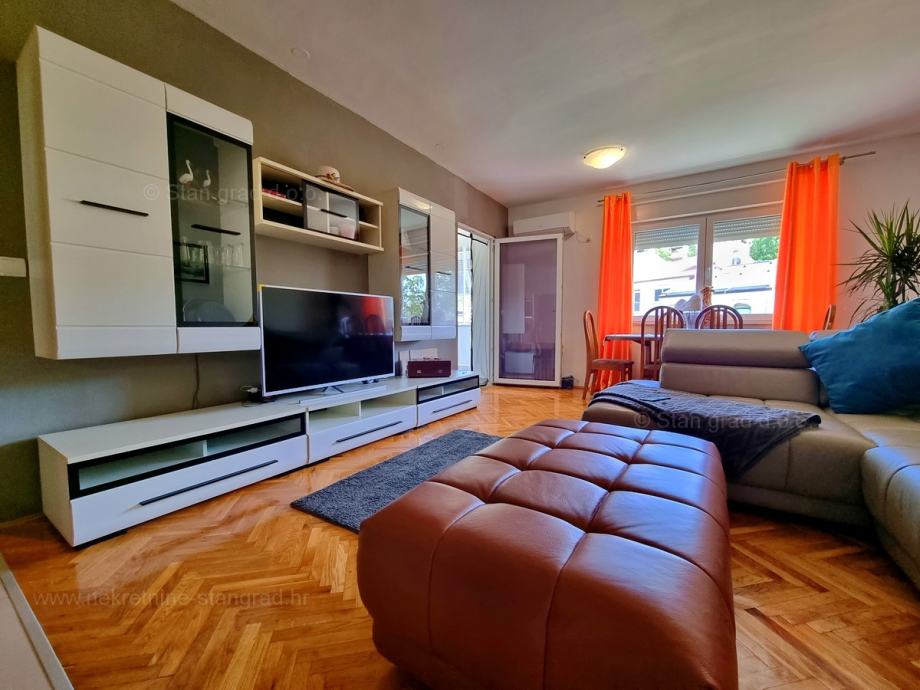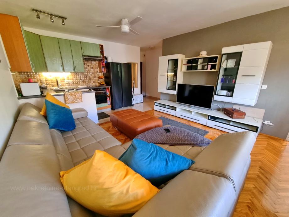 Na prodaji kod agencije Stan Grad Immobilien je vrlo dobar apartman u mediteranskoj regiji otok Krk, tradicionalno atraktivnom području za turistički boravak na hrvatskom Jadranu. Ovaj je apartman sagrađen na kvalitetnoj lokaciji na području grada Njivice, nedaleko mora i sadržaja potrebnih za turistički boravak i svakodnevni život. Ovo je vrlo udobni, srednje veliki jednoetažni apartman vrlo dobrog rasporeda. Unutar solidno izgrađenog objekta, apartman je smješten na 3. etaži. Površina ovog apartmana iznosi ukupno 46,86 m2. U toj su površini obuhvaćeni dnevni boravak i kuhinja, 1 spavaća soba, kupaonica i balkona. Nekretnina je iznutra recentno renovirana promjenom svih instalacija, PVC stolarijom, električnim roletama, a prostor opremljen dobrim namještajem i aparatima. Vlasnik apartmana može neometano koristiti sve pripadajuće zajedničke dijelove i prostore nekretnine. Vlasnik apartmana ima mogućnost parkiranja vozila na javnoj površini u blizini apartmana. Ponad opisanih karakteristika, nekretnina je i pogodne orijentacije, pa osigurava vrlo lijep pogled na simpatično primorsko naselje. Ovaj apartman je u vlasništvu fizičke osobe i na ime njegovog prijenosa kupac je u obvezi plaćanja poreza na promet nekretnine u visini 3%. Prodavatelj nekretnine garantira brz prijenos vlasničkih prava te urednu vlasničku i tehničku dokumentaciju. Vaš partner Stan Grad Immobilien srdačno će vas dočekati na Kvarneru i pobrinuti za Vaš siguran i uspješan osjećaj kupovine nekretnine. Osim traženja i prezentacije idealne nekretnine za Vas, naš će vam posrednički ured asistirati u prijenosu računa za komunalije i uknjižbi vlasništva apartmana.