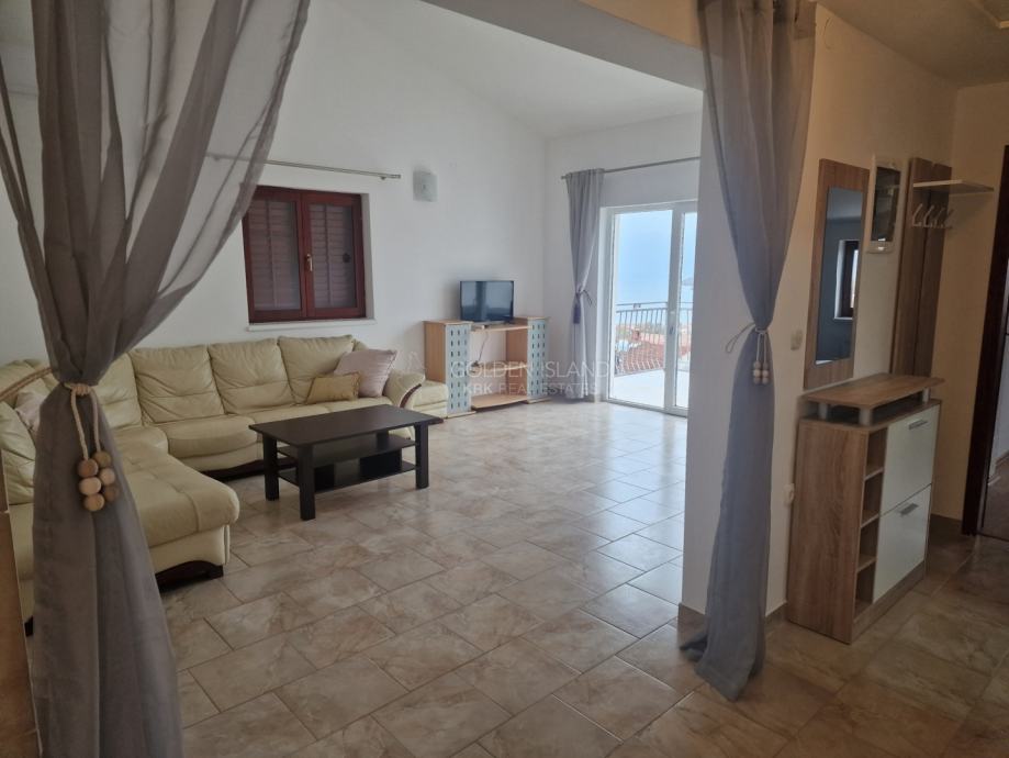 Lijep stan od 80 m2, sa pogledom na more, i malim vrtom na korištenje, iznajmljuje ozbiljnim osobama na dugoročno.