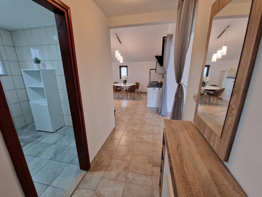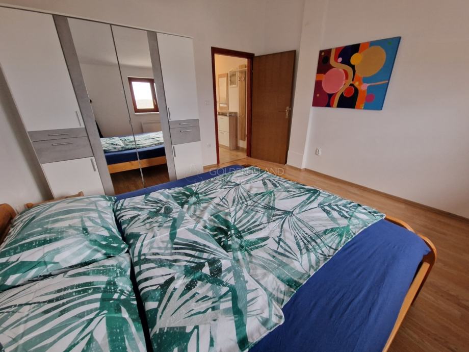 Stan ima 2 spavace sobe, dnevnu sobu, kuhinju sa blagovaonicom, lijepu terasu, klimu, te parkirno mjesto i vrt, kompletno je namješten.