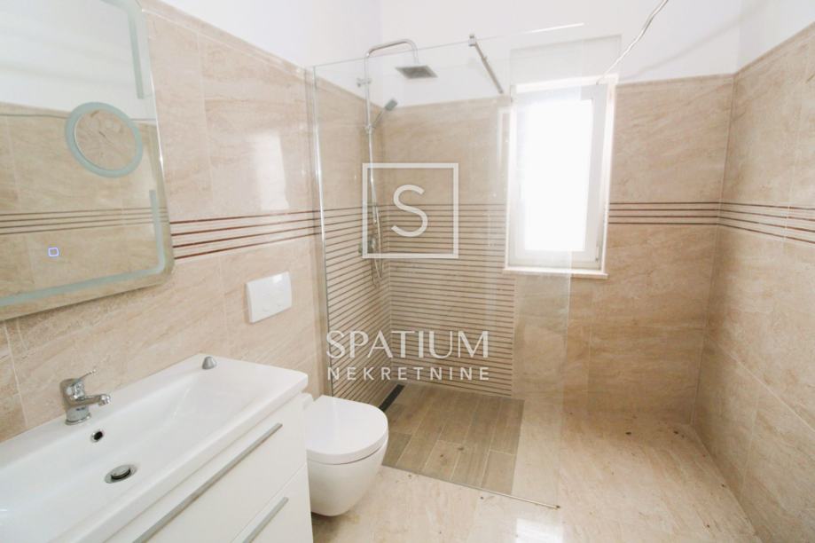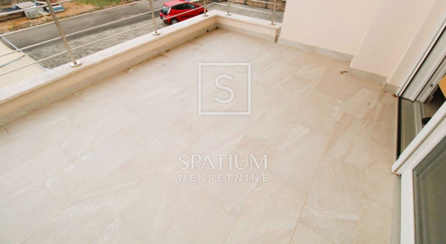 NJIVICE, u ponudi imamo stan u novogradnji s pogledom na more. Sastoji se od kuhinje s dnevnim boravkom iz kojeg se izlazi na balkon, s kojeg se pruža pogled na more, dvije spavaće sobe, kupaone. Pripada mu ograđena okućnica od 66m2 s roštiljem te parkirno mjesto od 12,5m2. U svakoj prostoriji je klima uređaj. Blizina mora.