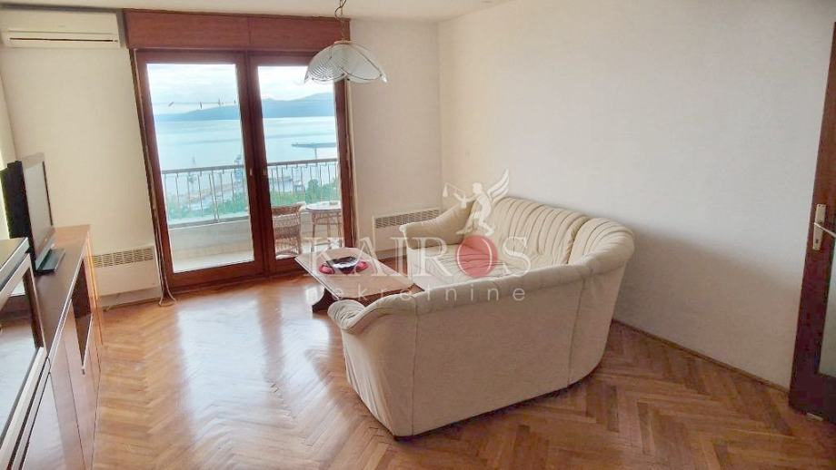 NN KRNJEVO, iznajmljujemo kompletno namješten stan površine 84 m2, trosoban s dnevnim boravkom i lođom na jugu s prekrasnim otvorenim pogledom na more. Stan se nalazi na 3. katu lijepe zgrade s liftom.