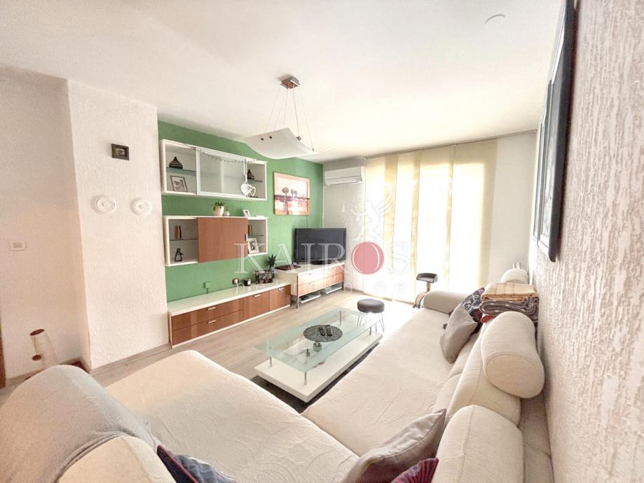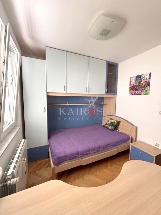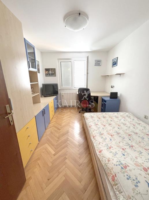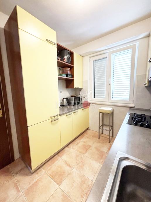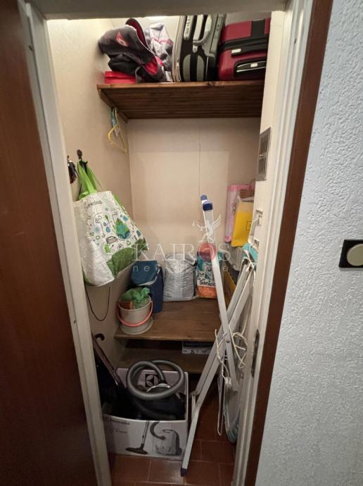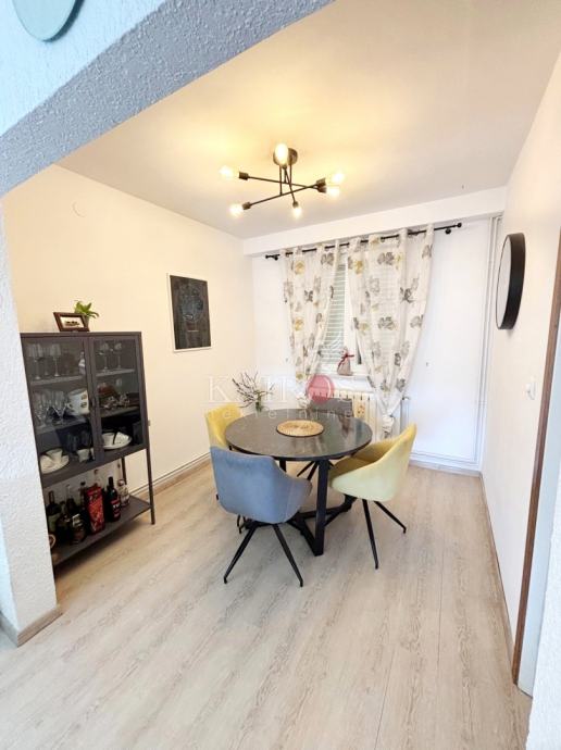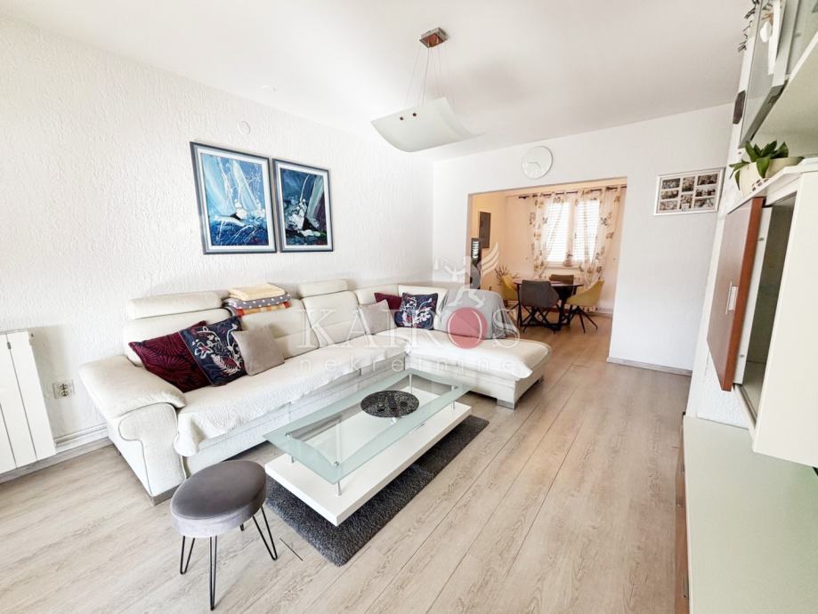 NN ŠRKURINJE, na vrhu naselja (prema Drenovi), stan trosoban s dnevnim boravkom i lođom na jugu. Stan ima površinu od 84 m2, trosoban s dnevnim boravkom, prodaje se kompletno namješten. Stan je prozračan, svijetao, uređen i održavan. Ima kupaonicu s wc-om i zasebni toalet za goste. Grijanje je etažno plisko, a također i ma i klima uređaj s inverterom (grijanje/hlađenje). U vlasništvu i drvarnica u suterenu zgrade.