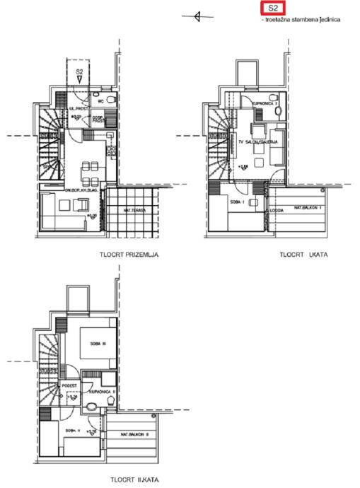 Apartman/kuća ima tri etaže, četiri sobe, dvije kupaonice, terase, vrt, 2 parkirna mjesta…