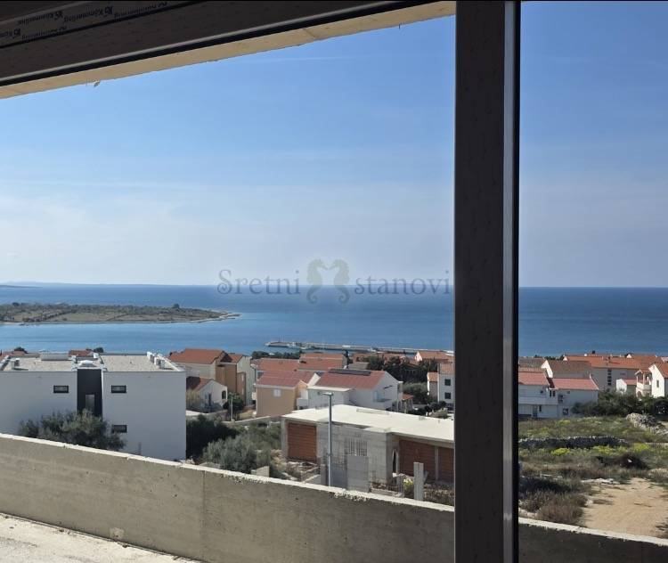 Prekrasan stan u modernoj novogradnji u Novalji s prelijepim pogledom na more i Novalju. Stan je na drugom katu i sastoji se od ulaznog prostora, tri spavaće sobe, dnevnog boravka, kuhinje s blagovaonom, dvije kupaone, natkrivene terase/balkona i hodnika. Grijanje je podno i klimatizacija. Izuzetno kvalitetna stolarija s visokim vratima. Stan ima dva parkirna mjesta.