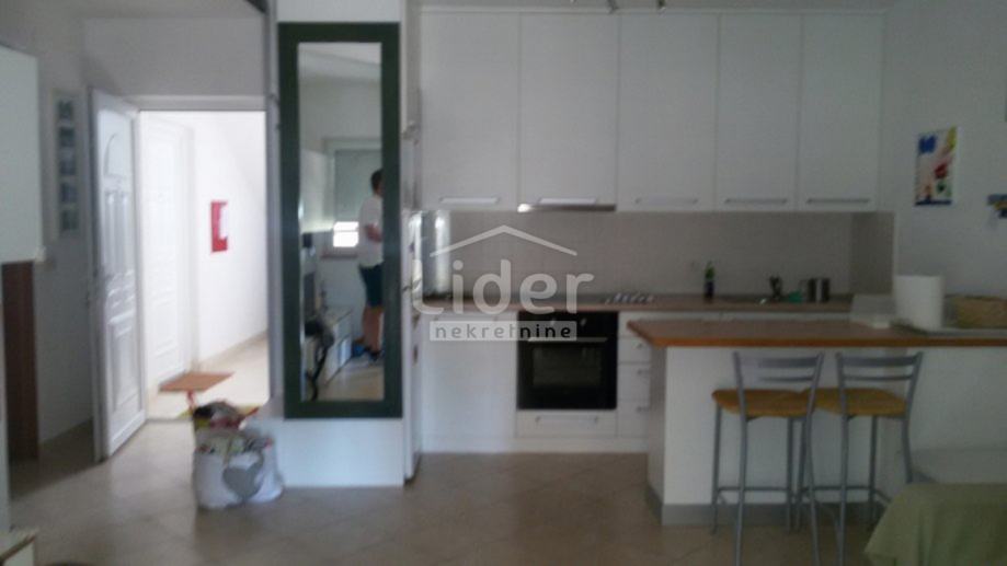 Najveća prednost ove nekretnine je okućnica te terasa većim dijelom natkrivena (vanjski tuš, roštilj, spremište). Privatno parkirno mjesto. Samo 250 m od mora.