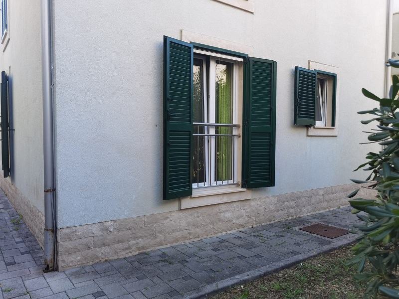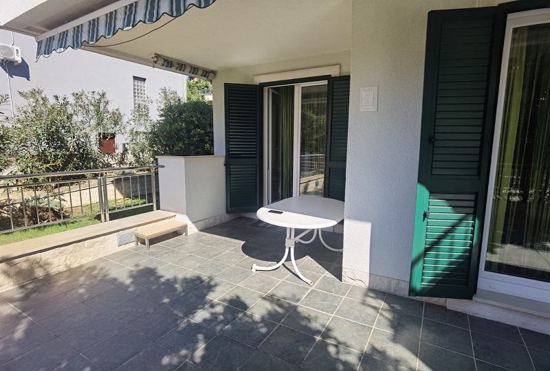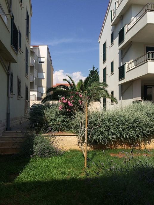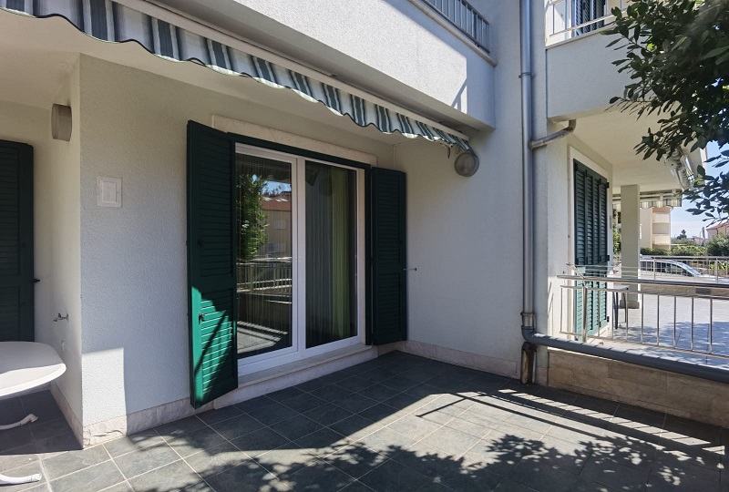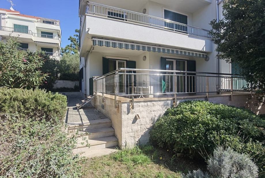 Sastoji se od 2 spavaće sobe, kupaone s wc-om, dnevnog boravka s kuhinjom i blagovaonom i velike terase površine 28,80 m2 s tendom sa senzorima i brodskom inox ogrado, okružene zelenilom iz koje se izlazi u prekrasni vrt.