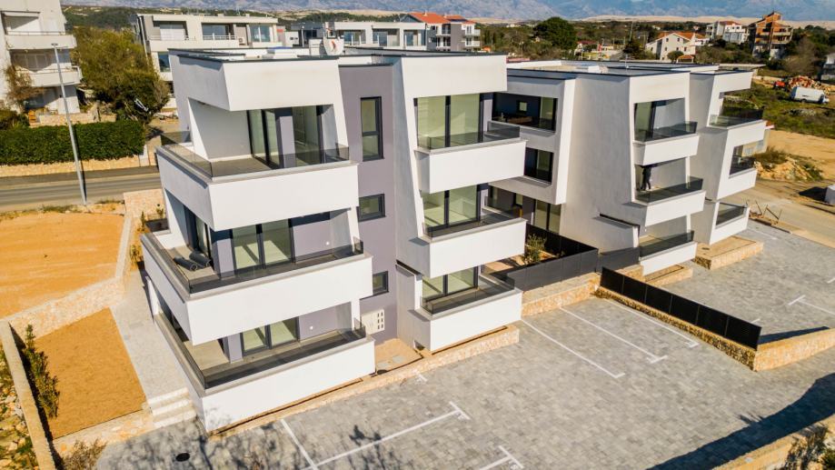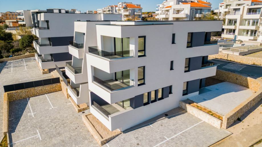 Obje zgrade imaju tri nadzemne etaže – prizemlje, prvi i drugi kat, a svaki apartman s loggiom ili balkonom nudi prekrasan pogled na more, stvarajući savršen ambijent za opuštanje. Prizemni stanovi imaju prostrane popločane okućnice koje nude udobnost i privatnost.