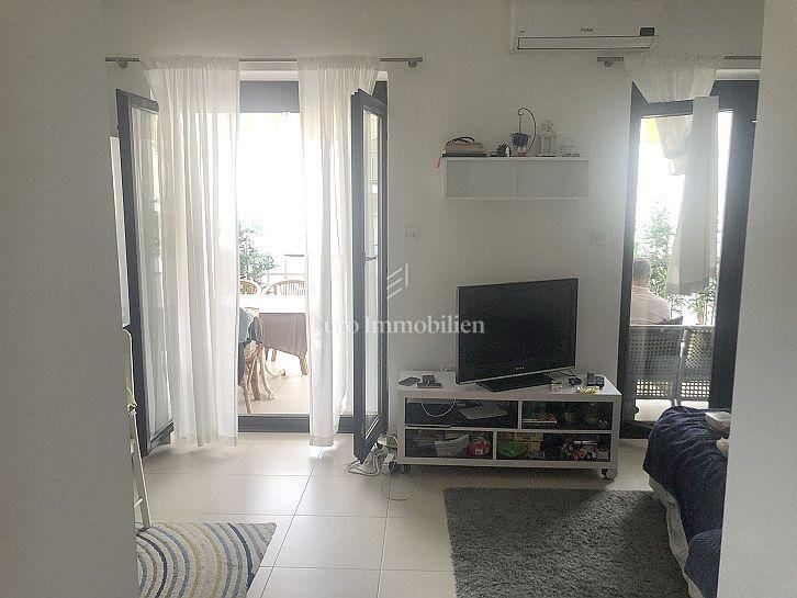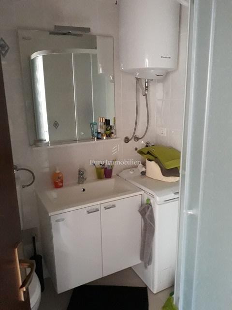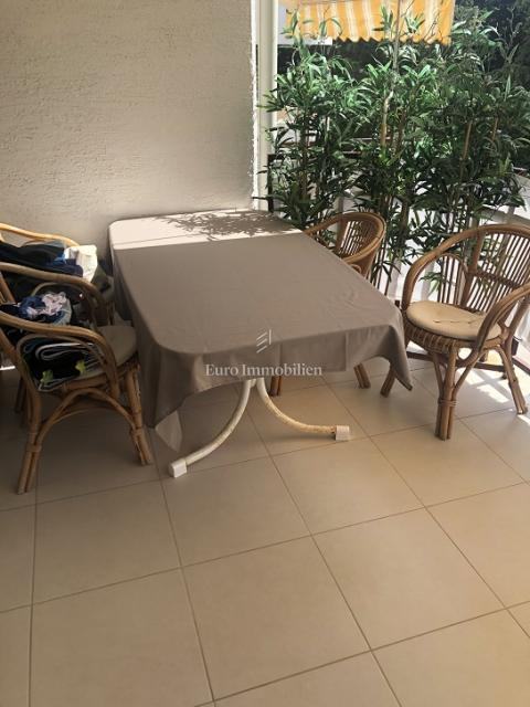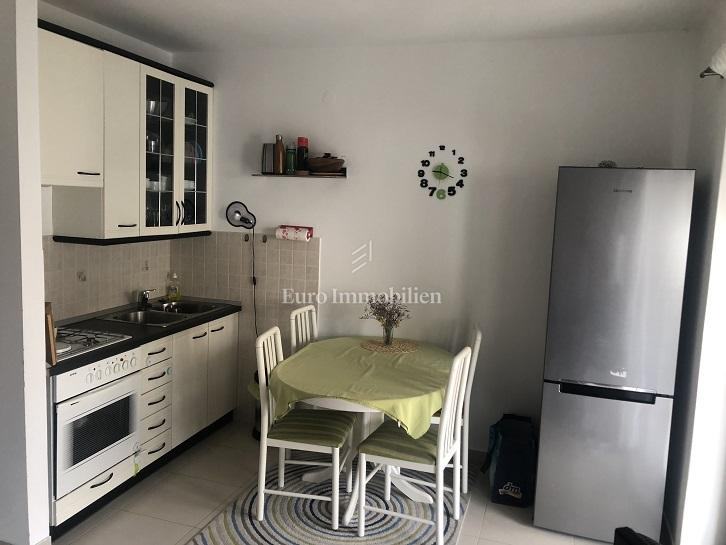 Sastoji se od ulaznog hodnika, spavaće sobe, kupaonice i dnevnog boravka s kuhinjom iz kojeg se izlazi na natkriveni balkon s tendom. Klimatiziran je i namješten. Pripada mu i spremište u podrumu površine 3 m2, kao i garažno mjesto. Do najbliže plaže samo minuta hoda, a do gradske plaže Babe cca 5 minuta. Do centra Novalje 10-ak minuta uređenom šetnicom uz more.