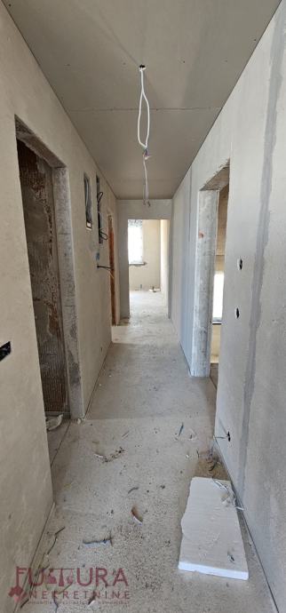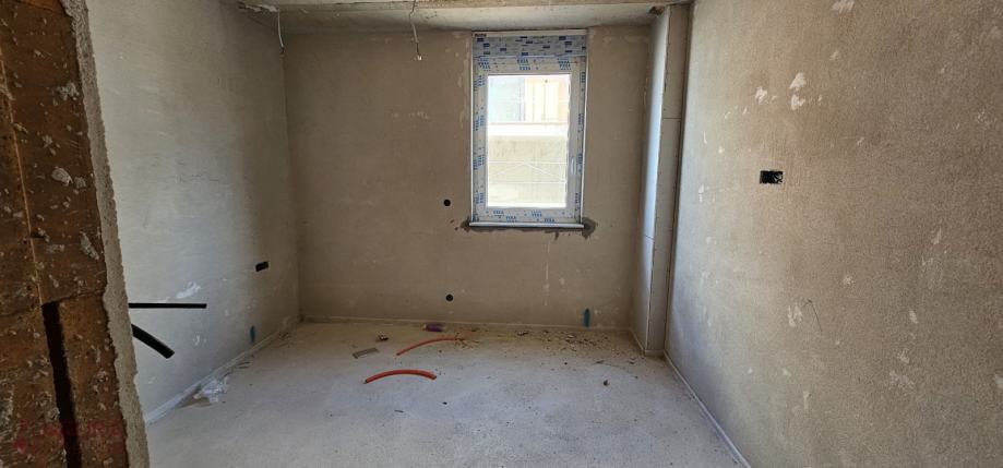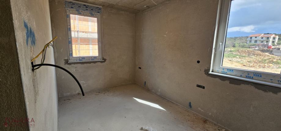 Sastoji se od: dvije spavaće sobe, dnevnog boravka + kuhinja + blagovaona, hodnika, dvije kupaonice i natkrivene terase.