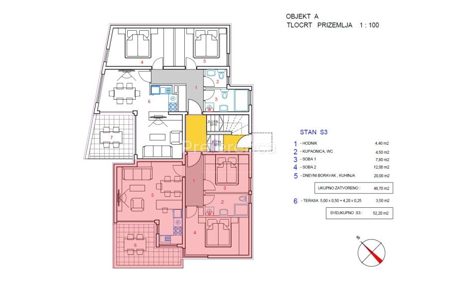 Tlocrt i površine – Stan S3 (Zgrada A)