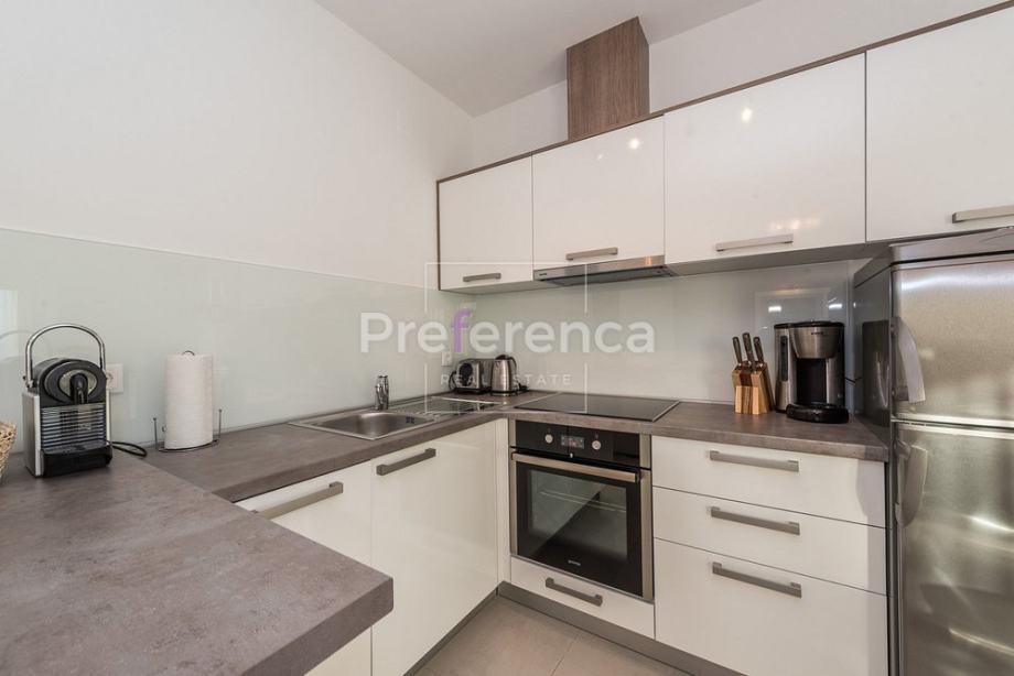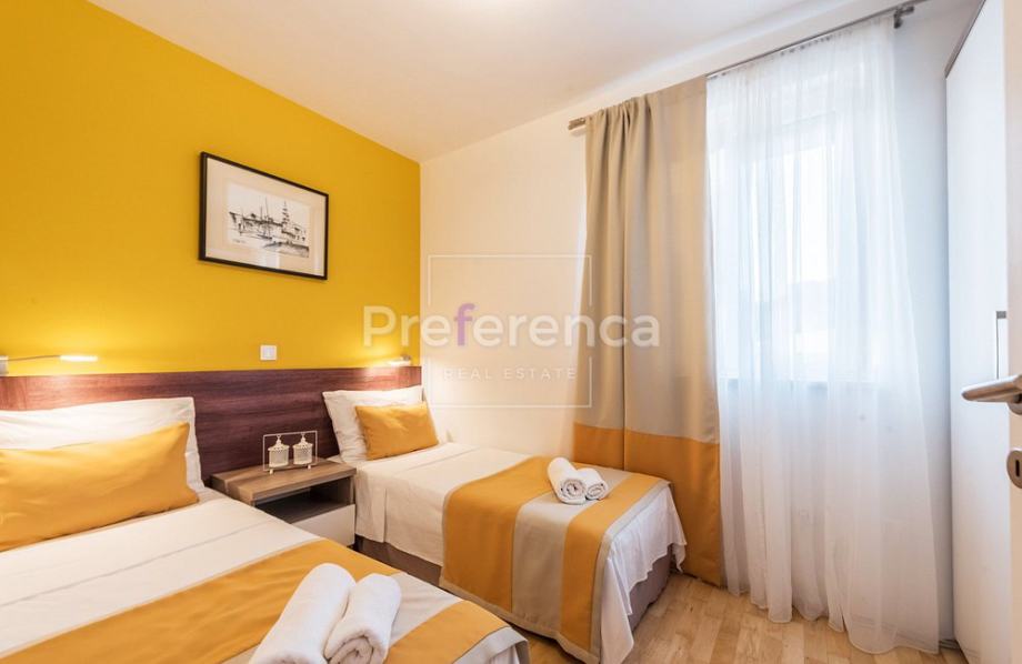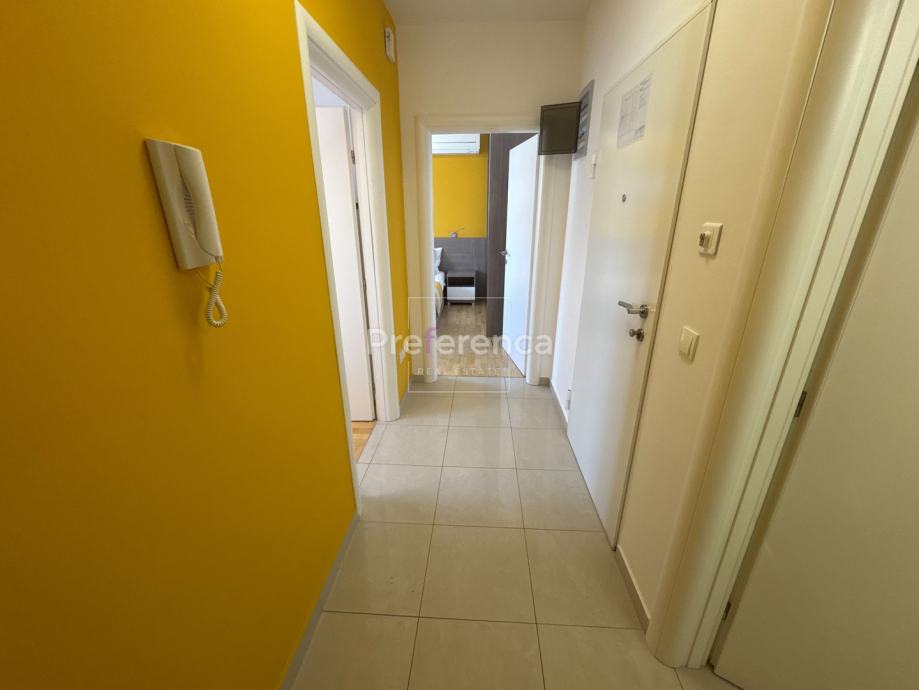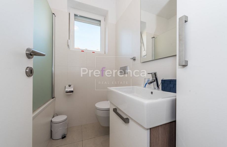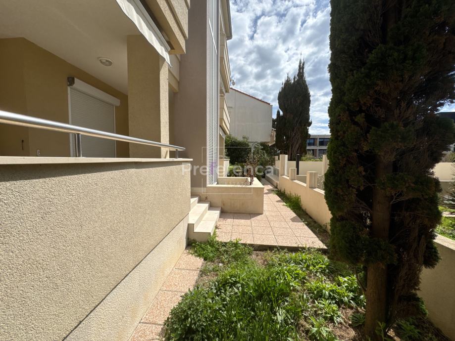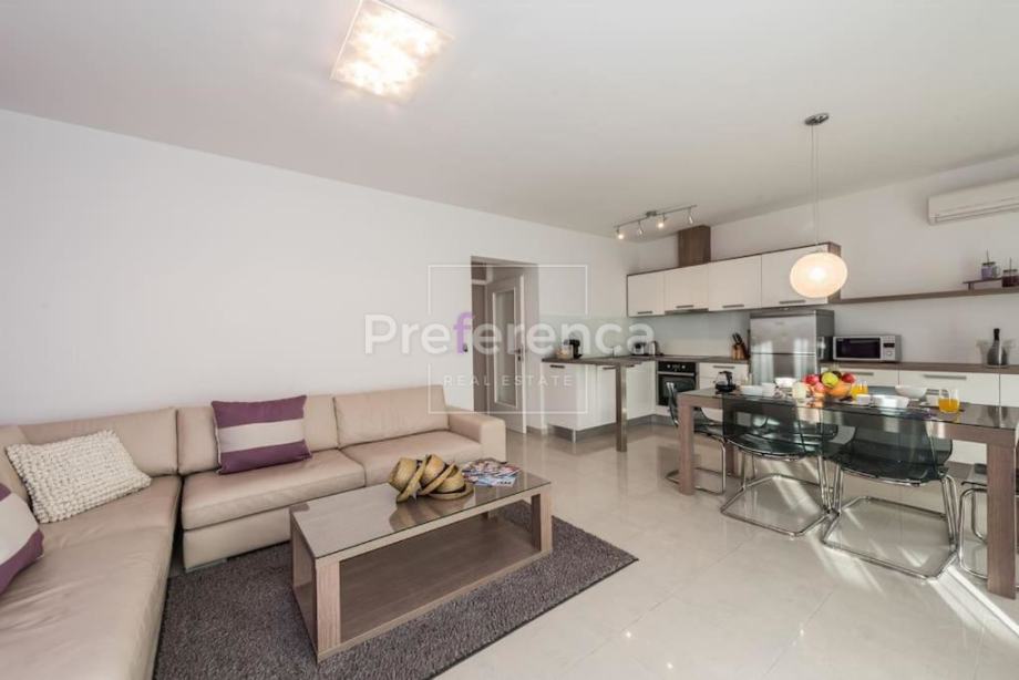 Ovaj stan se ističe svojom izuzetnom pozicijom, drugi red od mora, što pruža predivan pogled i puno sunčeve svjetlosti. Orijentacija prema sjeverozapadu dodatno doprinosi ugodnoj atmosferi unutar stana. Stan je opremljen klima uređajem za grijanje i hlađenje. Namješten je kvalitetnim namještajem po mjeri, spreman za useljenje.