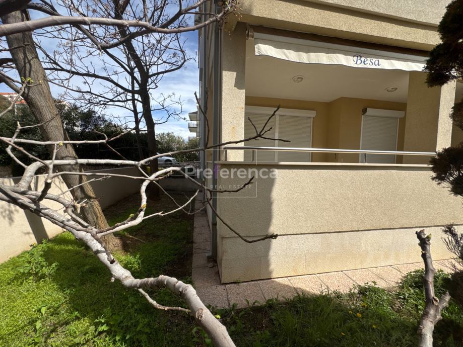 Na prodaju je 2-sobni stan površine 77,97 m2 u prizemlju, smješten u mirnom i atraktivnom području Novalje. Stan se nalazi u zgradi sa ukupno sedam stambenih jedinica. Sastoji se od ulaznog hodnika, dvije kupaonice, dvije spavaće sobe (master soba ima vlastitu kupaonicu), kuhinje/blagovaonice/ dnevnog boravka i natkrivene terase. Ukupna stambena površina stana je 65,09m2. Stanu pripada prostran uređen vrt koji se proteže na zapadnu i sjevernu stranu.