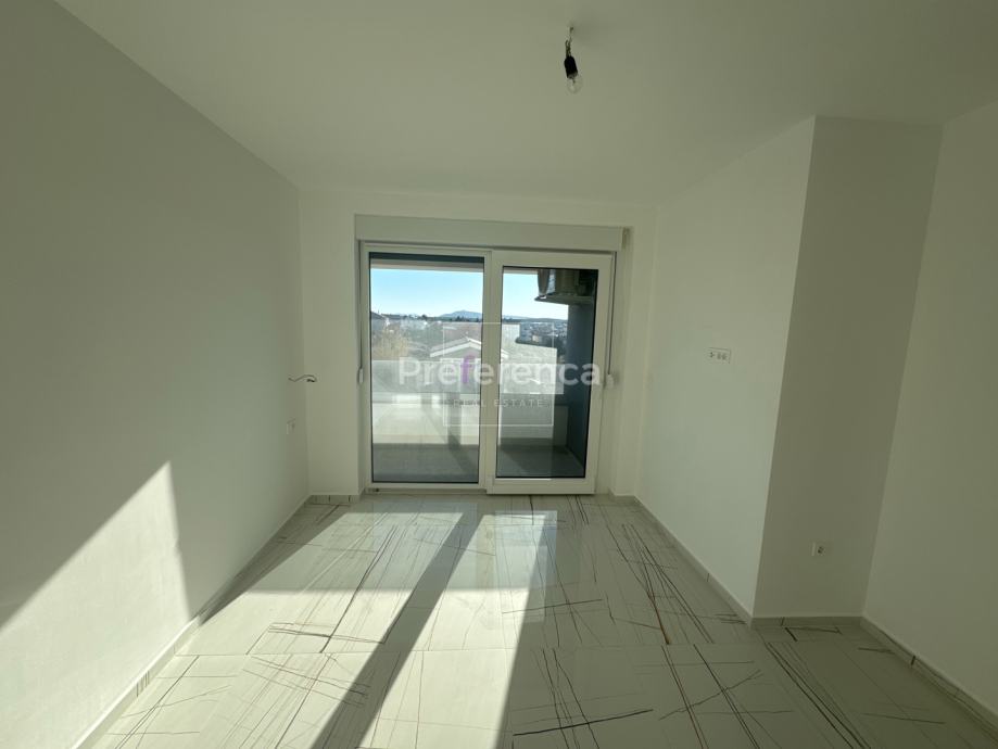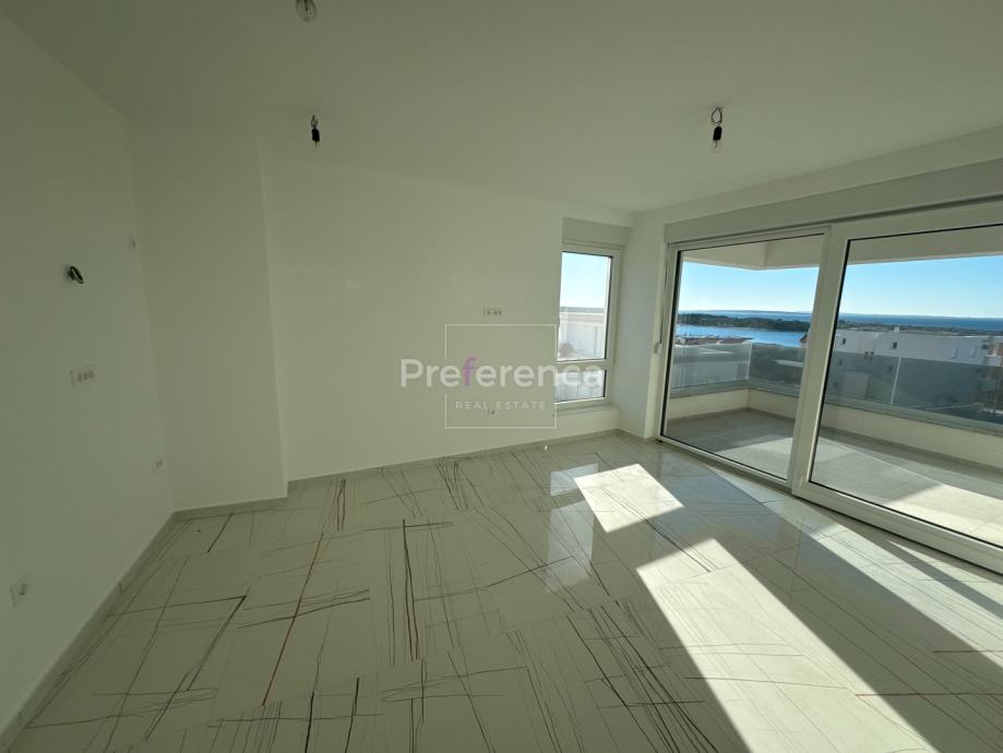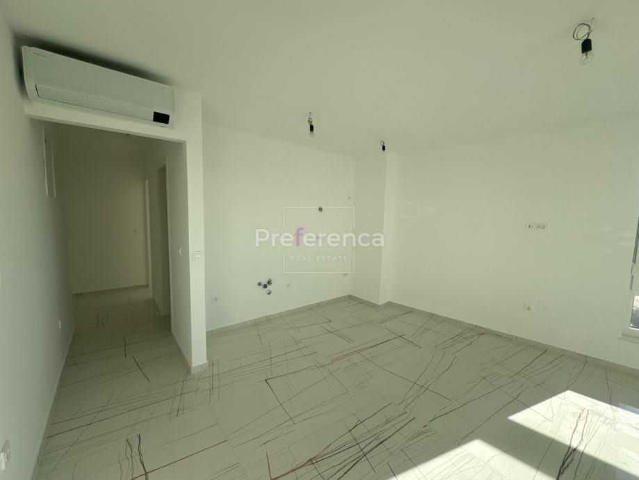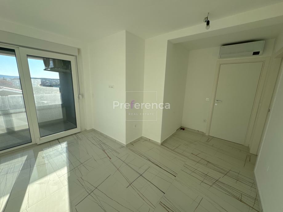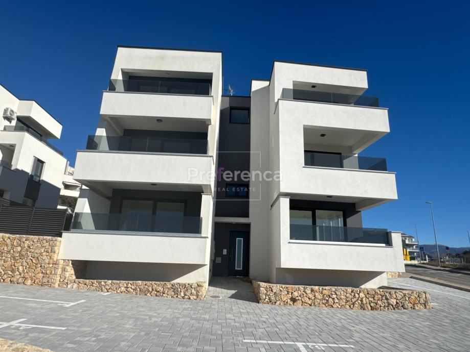Stan se sastoji od ulaznog hodnika, dvije spavaće sobe, dvije kupaonice, kuhinje/dnevnog boravka/blagovaonice te dvije natkrivene terase. Zahvaljujući svojoj orijentaciji prema sjeverozapadu (SZ), stan je vrlo sunčan i nudi prekrasan pogled na more. Sve prostorije su klimatizirane vrhunskim SAMSUNG klima uređajima, ugrađena kvalitetna sobna vrata sa magnetskim bravama i skrivenim okovima. Na svim vanjskim otvorima ugrađene podizne aluminijske rolete. Stan će biti djelomično opremljen sa kuhinjom s modernim aparatima, ugradbeni ormari, ormarić za obuću i garderobni ormari u spavaćim sobama te kupaonski namještaj već su osigurani, čime se pruža osnovna funkcionalnost.