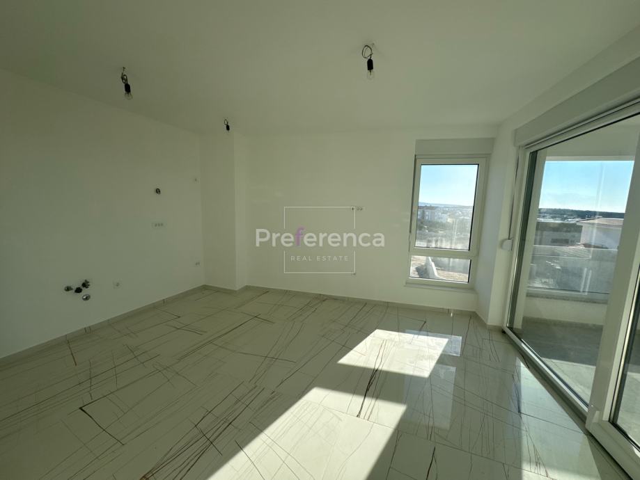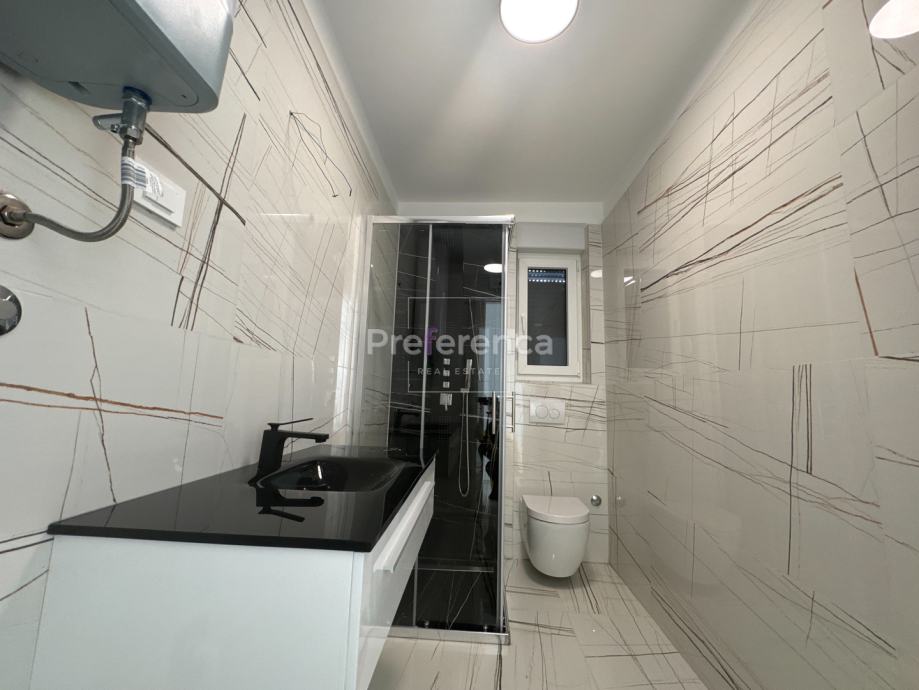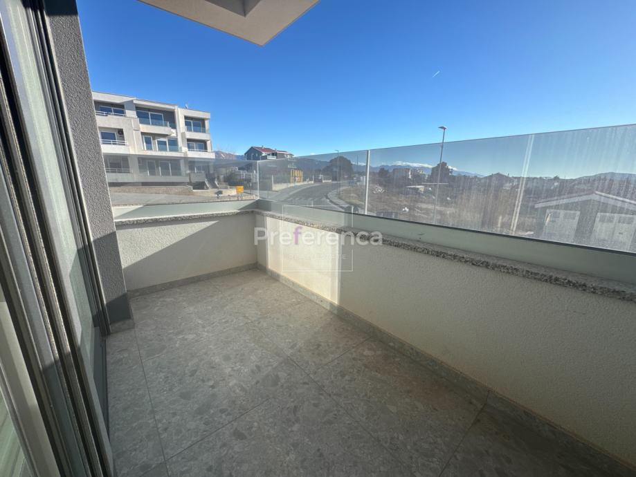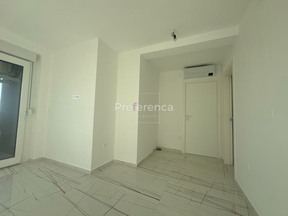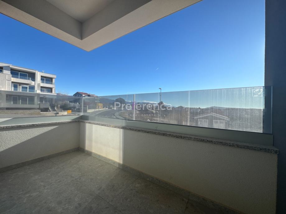 Stan se sastoji od ulaznog hodnika, dvije spavaće sobe, dvije kupaonice, kuhinje/dnevnog boravka/blagovaonice te dvije natkrivene terase. Zahvaljujući svojoj orijentaciji prema sjeverozapadu (SZ), stan je vrlo sunčan i nudi prekrasan pogled na more. Sve prostorije su klimatizirane vrhunskim SAMSUNG klima uređajima, ugrađena kvalitetna sobna vrata sa magnetskim bravama i skrivenim okovima. Na svim vanjskim otvorima ugrađene podizne aluminijske rolete. Stan će biti djelomično opremljen sa kuhinjom s modernim aparatima, ugradbeni ormari, ormarić za obuću i garderobni ormari u spavaćim sobama te kupaonski namještaj već su osigurani, čime se pruža osnovna funkcionalnost.