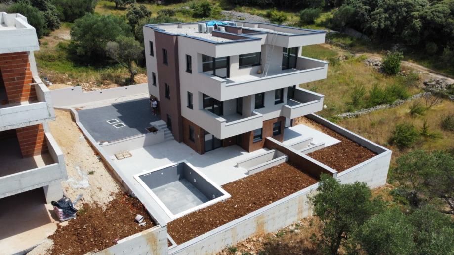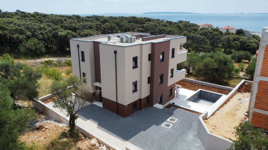 Prodaje se trosobni apartman (A1) ukupne neto površine 65.79 m2 na prvom katu novogradnje sa samo pet stanova u Jakišnici na otoku Pagu.