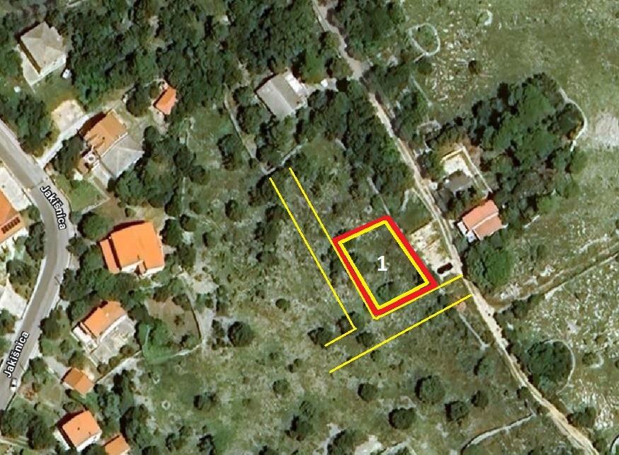 Prodaje se građevinsko zemljište (Br.1) površine 696 m2 s pogledom na more u Jakišnici na otoku Pagu, predio Gager.