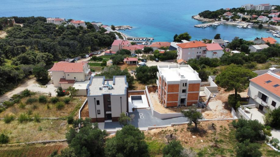 Prodaje se trosobni apartman (S1) ukupne neto površine 122,74 m2, s bazenom i vrtom u prizemlju novogradnje sa samo pet stanova u Jakišnici na otoku Pagu.