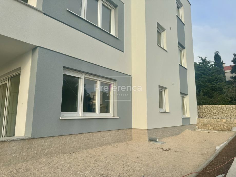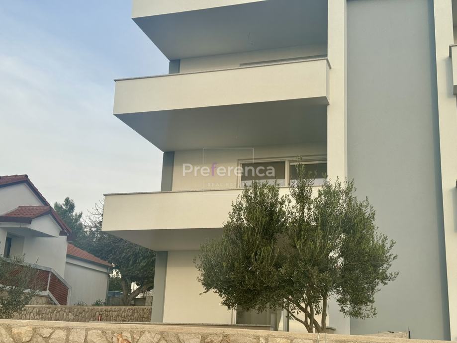 Na prodaju je moderan novosagrađeni 1,5-sobni stan (1S+DB) smješten u prizemlju objekta izgrađenog 2024. godine u atraktivnom mjestu Novalja. Ova prostrana nekretnina od 63,54 m2 nudi jedinstvenu priliku za život u mirnoj i sunčanoj lokaciji s prekrasnim pogledom na more. Stan S3 se nalazi u zgradi sa 6 apartmanskih jedinica. Sastoji se od ulaznog hodnika, jedne spavaće sobe, kupaonice, wc-a, kuhinje/blagovaonice/dnevnog boravka, prostrane natkrivene terase i vrta. U stanu je postavljeno podno grijanje u dnevnoj sobi, hodniku, kupaonici i wc-u. Svaka prostorija ima ugrađen klima uređaj Mitsubishi (vanjska jedinica ugrađena na krov zgrade). Ugrađena vrhunska podizno klizna stolarija sa roletama na motor, podne obloge u sobi vinil.