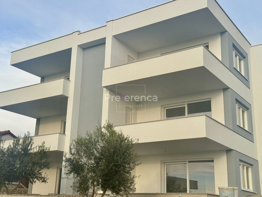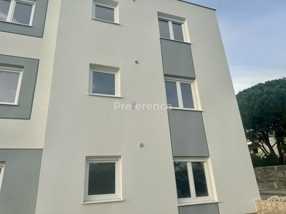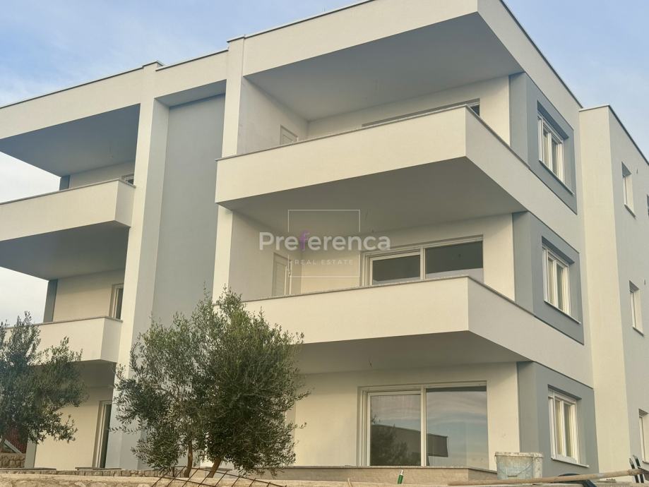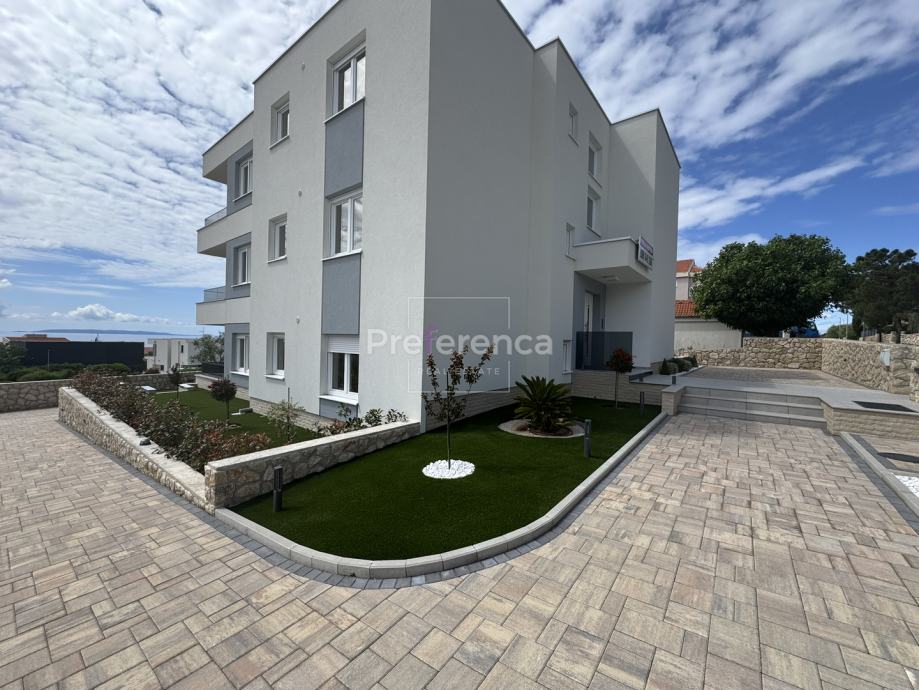 Na prodaju je moderan novosagrađeni 1,5-sobni stan (1S+DB) smješten na PRVOM KATU objekta izgrađenog 2024. godine u atraktivnom mjestu Novalja. Ova prostrana nekretnina od 63,99 m2 nudi jedinstvenu priliku za život u mirnoj i sunčanoj lokaciji s prekrasnim pogledom na more. Stan A1 unutarnje kvadrature 52,42m2 (bez pripadaka) se nalazi u zgradi sa 6 apartmanskih jedinica. Sastoji se od ulaznog hodnika, JEDNE spavaće sobe, kupaonice, wc-a, kuhinje/blagovaonice/dnevnog boravka, prostrane natkrivene terase i vrta. Natkrivena terasa veličine 13,87m2 ima pogled na more, u sklopu terase nalazi se i vanjsko spremište veličine 1,80m2. U stanu je postavljeno podno grijanje u dnevnoj sobi, hodniku, kupaonici i wc-u. Svaka prostorija ima ugrađen klima uređaj Mitsubishi (vanjska jedinica ugrađena na krov zgrade). Ugrađena vrhunska podizno klizna stolarija sa roletama na motor, podne obloge u sobi vinil.