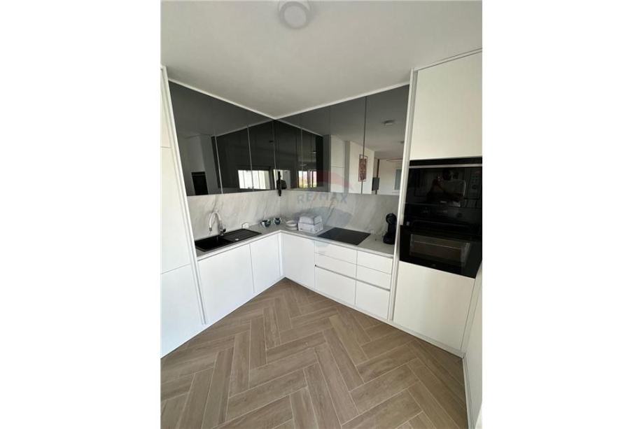 Stan veličine 80,08 m2 sastoji se od ulaznog hodnika, spavaće sobe, kupaonice, dnevnog boravka/kuhinje/blagovaonice te dvije terase. Soba ima izlaz na terasu veličine 8,77m2. Prostrana terasa veličine 21,83m2 kojoj se pristupa iz dnevnog boravka ima pogled na more i novaljsku uvalu. Zgrada je orjentirana prema zapadu, u dvorištu zgrade nalaze se parkirališta za svaki stan. Moderan dizajn garantira visoku energetsku učinkovitost, u gradnji se upotrebljavaju se vrhunski materijali.