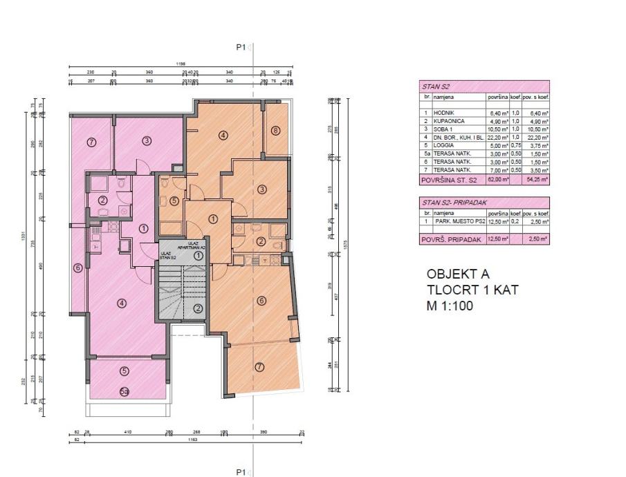 Prodaje se prostrani 1,5-sobni stan (S2, ZGRADA A,1S+DB) površine 56,75 m2, smješten na prvom katu novogradnje iz 2024. godine u atraktivnom gradu Novalja. Ovaj stan idealan za one koji traže miran dom ili investicijsku priliku na traženoj lokaciji. Stan se nalazi u zgradi sa ukupno 6 stambenih jedinica.