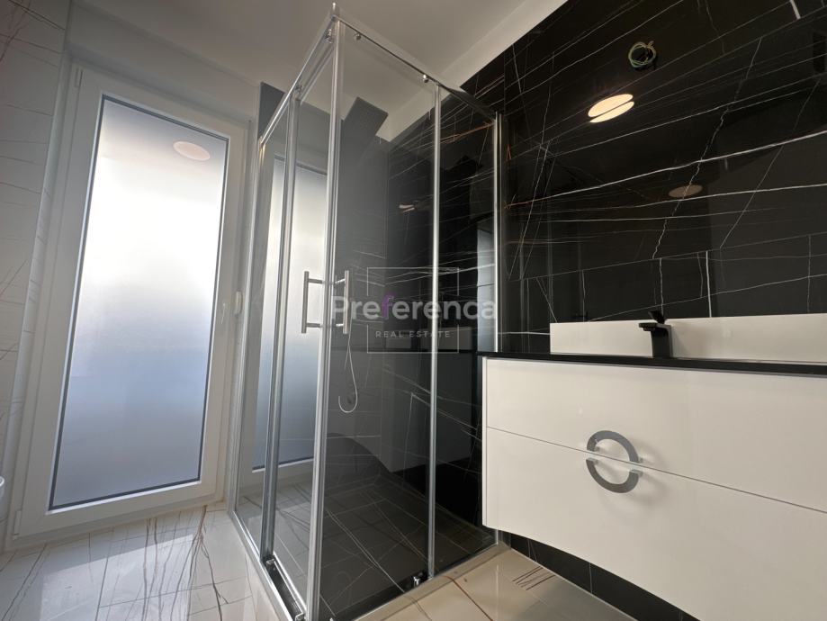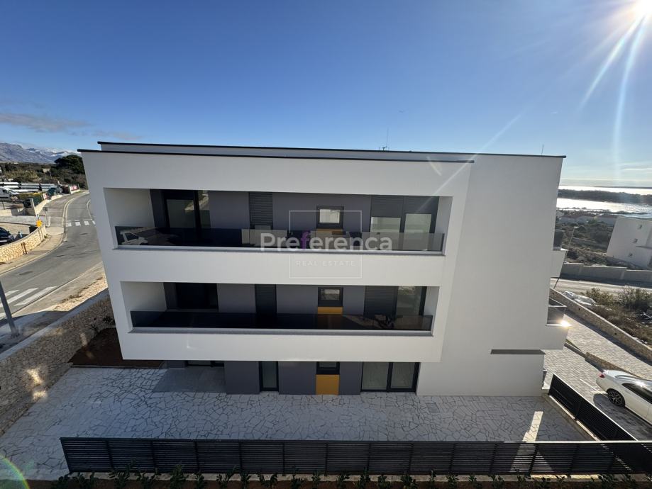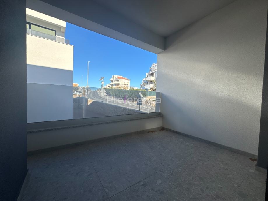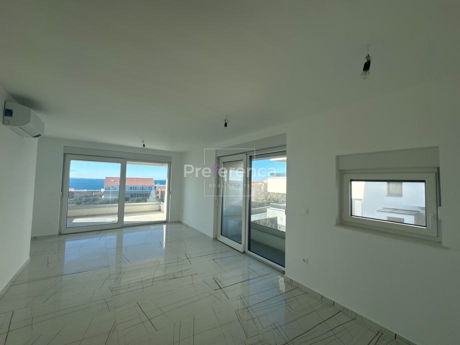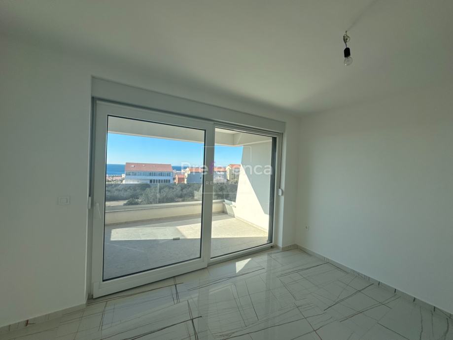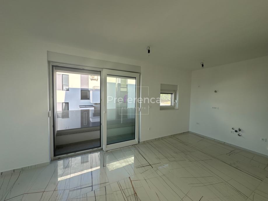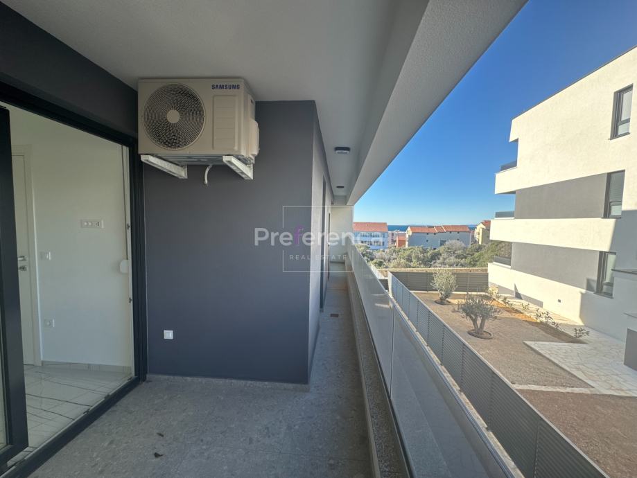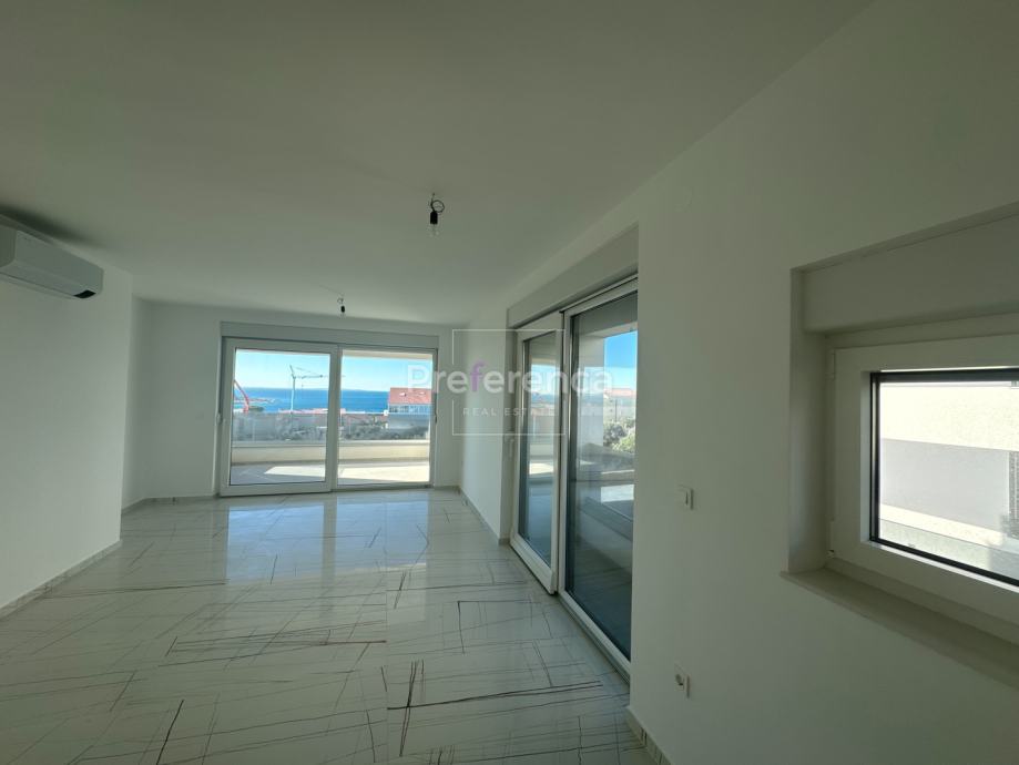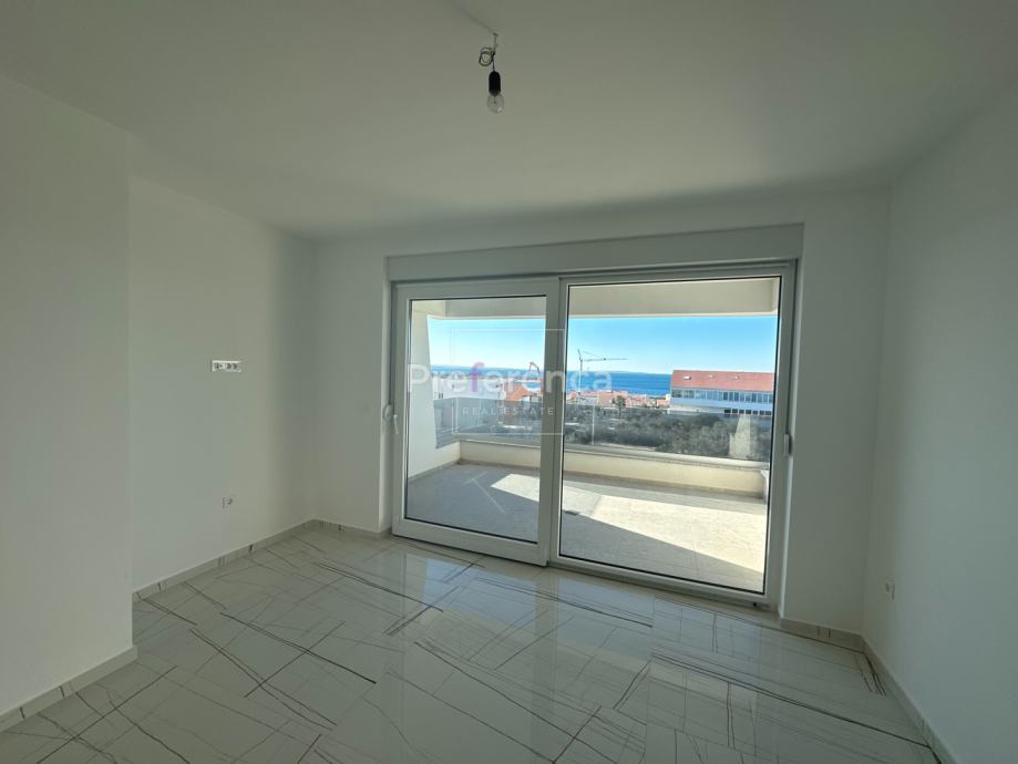 Stan se sastoji od jedne spavaće sobe, hodnika, kupaonice, kuhinje/dnevnog boravka/blagovaonice te dvije natkrivene terase. Zahvaljujući svojoj orijentaciji prema sjeverozapadu (SZ), stan je vrlo sunčan i nudi prekrasan pogled na more. Iz sobe, kupaonice i dnevnog boravka se izlazi na terasu koja se proteže cijelom sjevernom stranom stana. Sve prostorije su klimatizirane vrhunskim SAMSUNG klima uređajima, ugrađena kvalitetna sobna vrata sa magnetskim bravama i skrivenim okovima. Na svim vanjskim otvorima ugrađene podizne aluminijske rolete. Stan će biti djelomično opremljen sa kuhinjom s modernim aparatima, ugradbeni ormari, ormarić za obuću i garderobni ormari u spavaćim sobama te kupaonski namještaj već su osigurani, čime se pruža osnovna funkcionalnost.