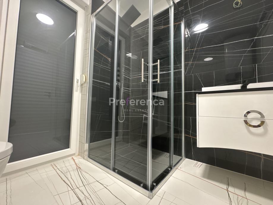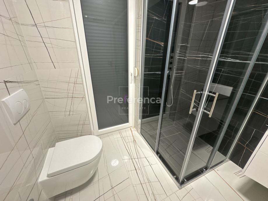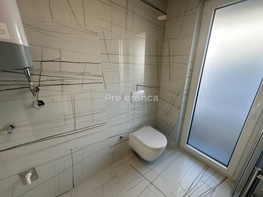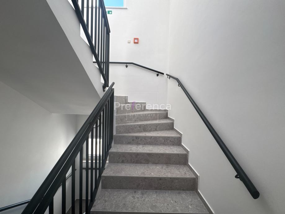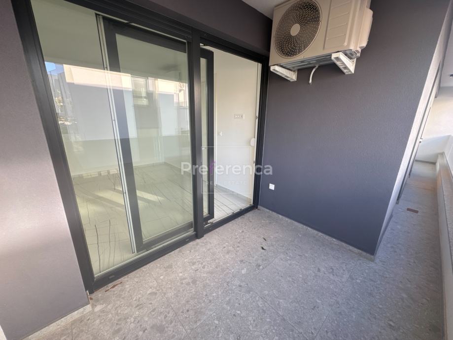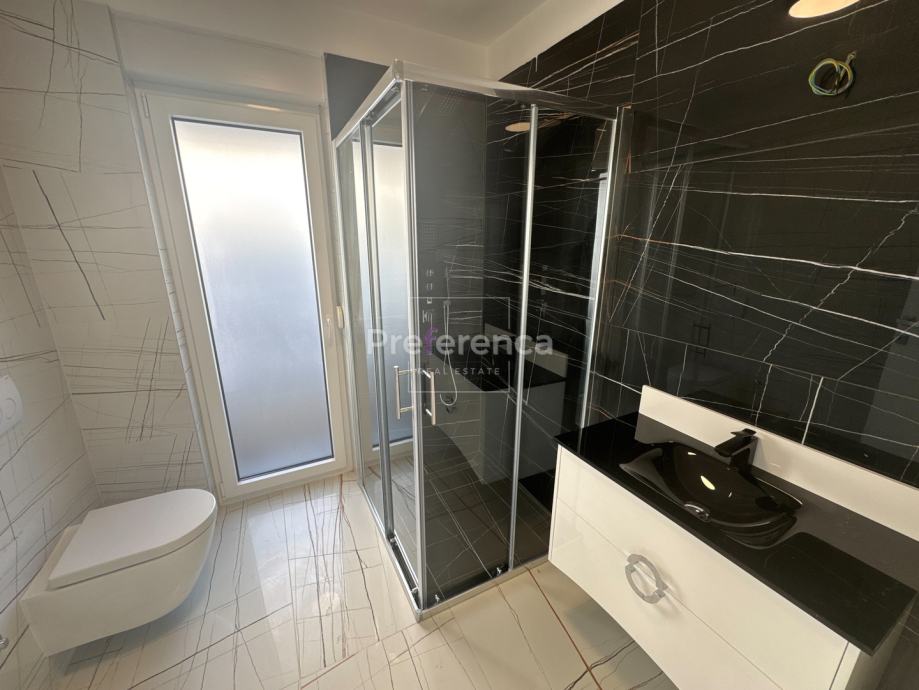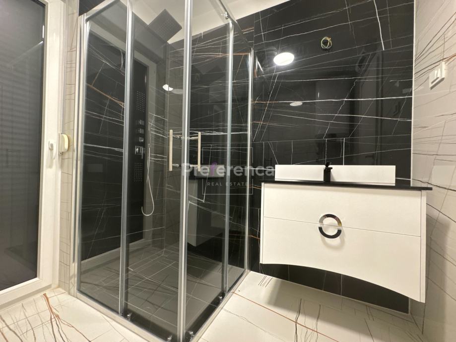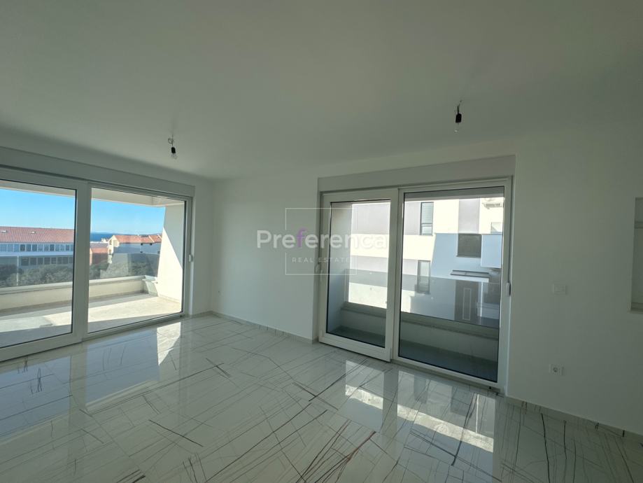 Stan se sastoji od jedne spavaće sobe, hodnika, kupaonice, kuhinje/dnevnog boravka/blagovaonice te dvije natkrivene terase. Zahvaljujući svojoj orijentaciji prema sjeverozapadu (SZ), stan je vrlo sunčan i nudi prekrasan pogled na more. Iz sobe, kupaonice i dnevnog boravka se izlazi na terasu koja se proteže cijelom sjevernom stranom stana. Sve prostorije su klimatizirane vrhunskim SAMSUNG klima uređajima, ugrađena kvalitetna sobna vrata sa magnetskim bravama i skrivenim okovima. Na svim vanjskim otvorima ugrađene podizne aluminijske rolete. Stan će biti djelomično opremljen sa kuhinjom s modernim aparatima, ugradbeni ormari, ormarić za obuću i garderobni ormari u spavaćim sobama te kupaonski namještaj već su osigurani, čime se pruža osnovna funkcionalnost.