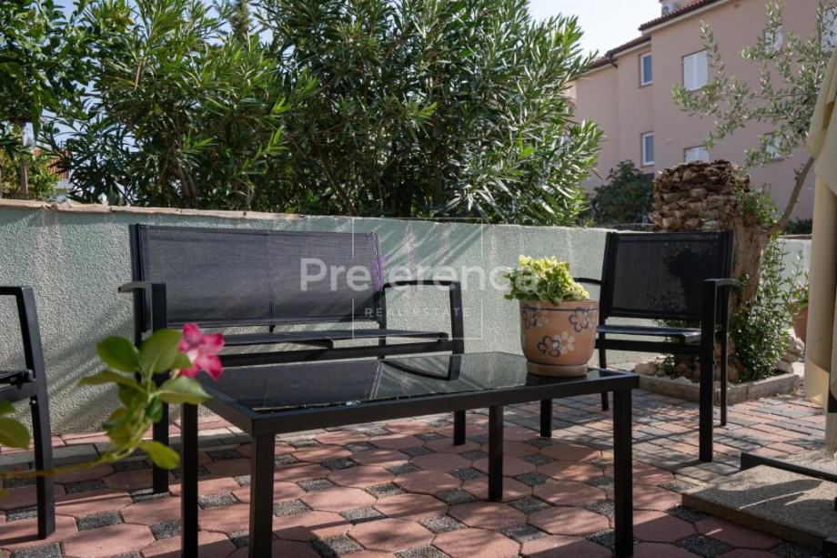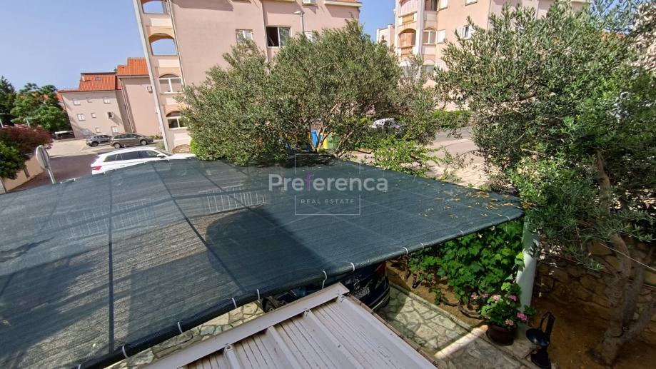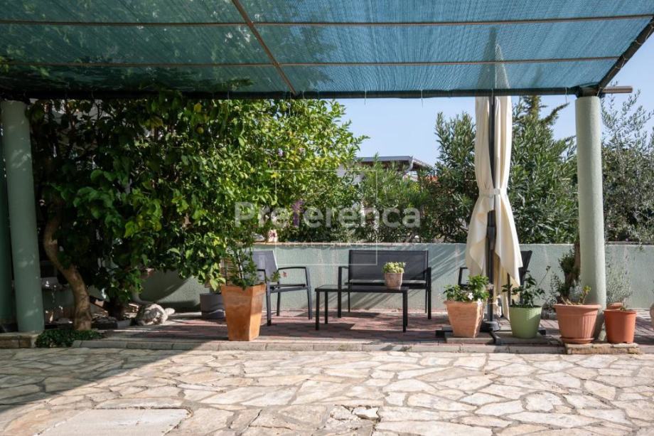Kuća ima lijepo uređenu okućnicu sa mediteranskim biljem, sa vanjskim roštiljem, dodatnim spremištem i prostorom sa vanjskim tušem. Sve jedinice su klimatizirane. U dvorištu je moguće parkiranje dva automobila. Vanjska fasada nekrentine u potpunosti obnovljena 2023 godine, prodaje se kompletno namještena. Kuća je u odličnom stanju, vrhunski održavana, u dvorištu benkovački kamen.