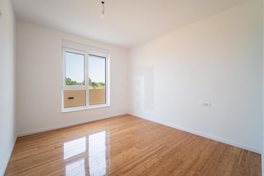 Stan se sastoji od ulaznog hodnika, 2 spavaće sobe, 2 kupaone, "open space" kuhinje, blagavaone i dnevnog boravka sa izlazom na prostranu terasu (22m2) i privatni vrt (106m2).