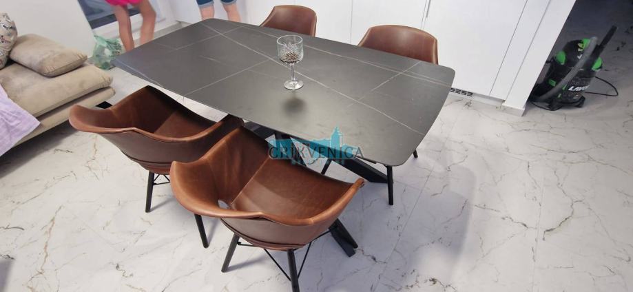 Stan je opremljen novim vrhunskim namještajem te se takav i prodaje. Rolete na struju, protuprovalna vrata, troslojna stakla, prvoklasna keramika, samo su neke od prednosti ove nekretnine. Grijanje je na Daikin klimu.