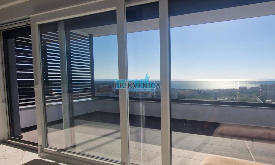 Stan se nalazi na drugom katu zgrade, a od prostorija ima prostrani dnevni boravak iz kojeg se izlazi na terasu sa panoramskim pogledom na more i okolicu (terasa veličine 24m2), kuhinju sa blagovaonicom, tri spavaće sobe, kupaonica, wc i hodnik.