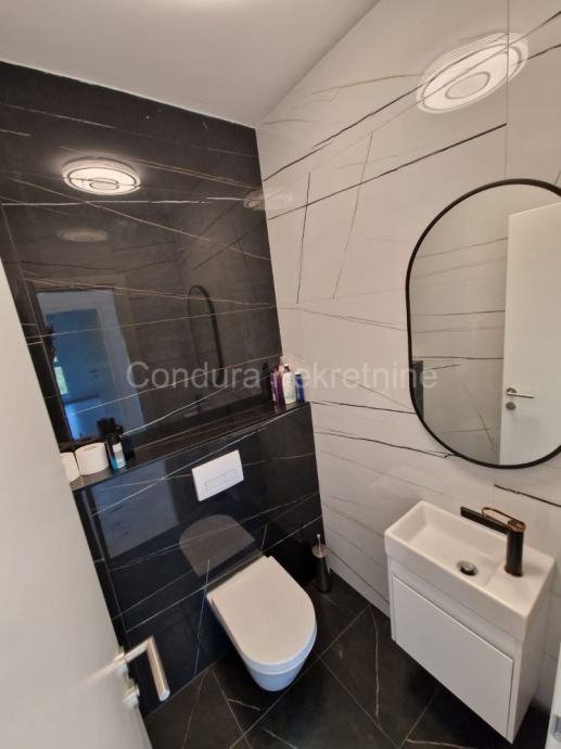 Stan je smješten na drugome katu u luksuznoj stambenoj zgradi s ukupno šest jedinica.