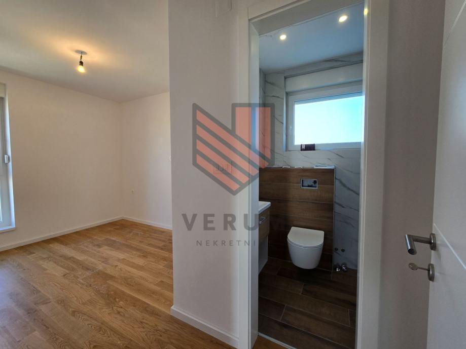 Apartman je pažljivo osmišljen kako bi pružio maksimalnu udobnost i iskorištenost prostora. Sastoji se od dvije prostrane spavaće sobe, od kojih master spavaća soba ima vlastitu, zasebnu kupaonicu, što osigurava dodatnu privatnost i komfor. Uz to, stan raspolaže s još jednom potpuno opremljenom kupaonicom.