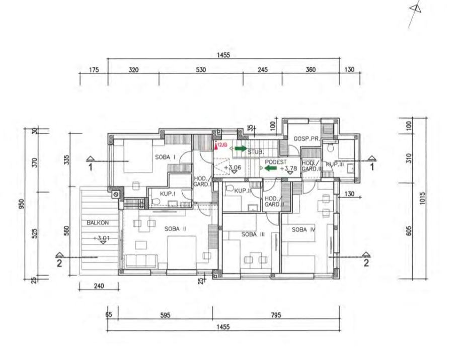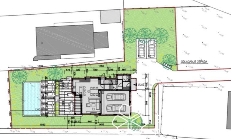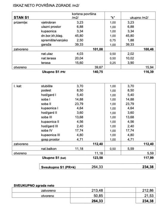 Stan S1 - stambena površina 212.86 m2 (4 spavaće sobe + 4 kupaonice) + natkrivena terasa (10,02m2) + bazen + nenatkrivena terasa (3,90m2) + natkriveni balkon (5,59m2) + garaža (39,33m2) + dva vanjska parking mjesta = 950.000 EUR