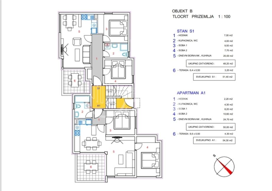 Prodaje se trosobni apartman obračunske površine 54,30 m² smješten u prizemlju moderne novogradnje na izvanrednoj lokaciji drugi red do mora, svega 30 metara od najbliže plaže.