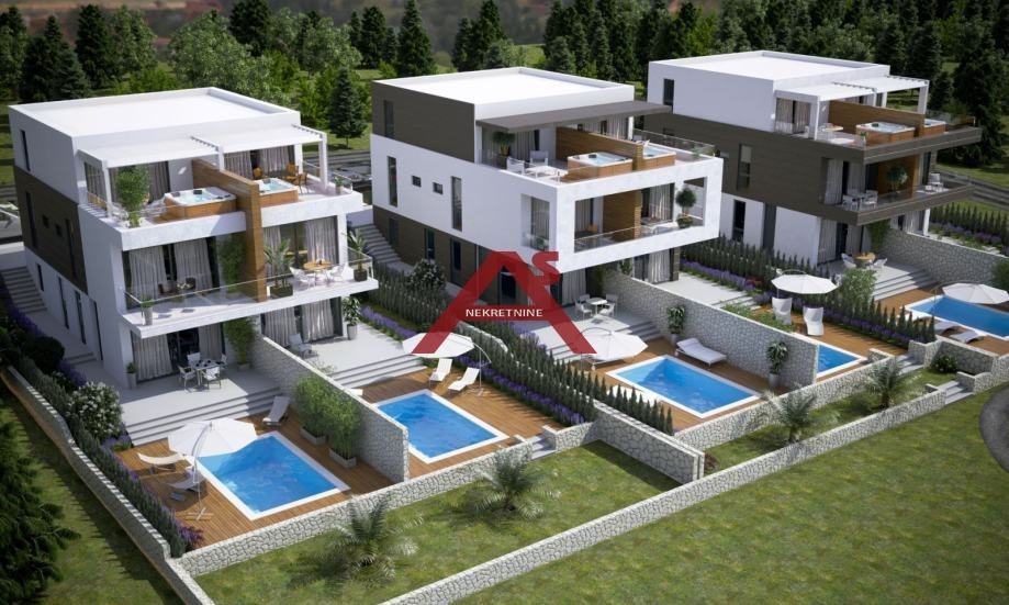 Novalja, luksuzan apartman s okućnicom i bazenom.