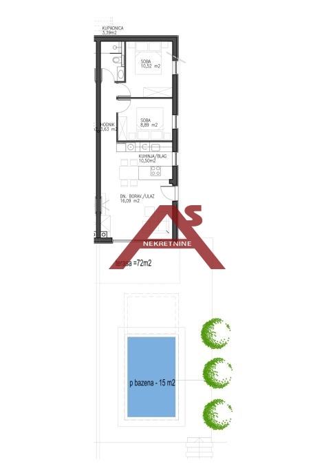 pripada i dio okućnice s bazenom i parkirno mjesto.