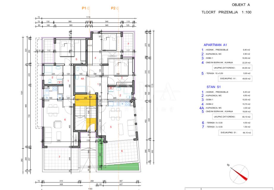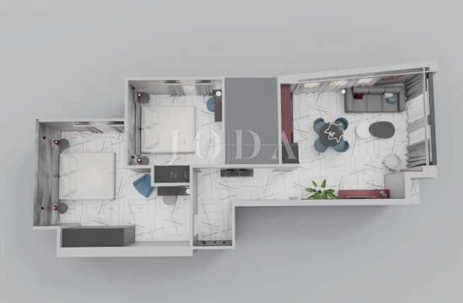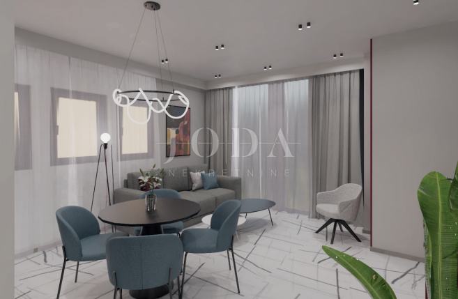 Dvosobni stanovi su koncipirani tako da se lako mogu podijeliti na dva (studio te jednosobni), sa balkonima što ih čini idealnima za turistički najam pogotovo u mjestu kao što je Novalja, koja ima odličnu popunjenost.