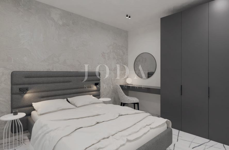 Dvosobni stanovi su koncipirani tako da se lako mogu podijeliti na dva (studio te jednosobni), sa balkonima što ih čini idealnima za turistički najam pogotovo u mjestu kao što je Novalja, koja ima odličnu popunjenost.