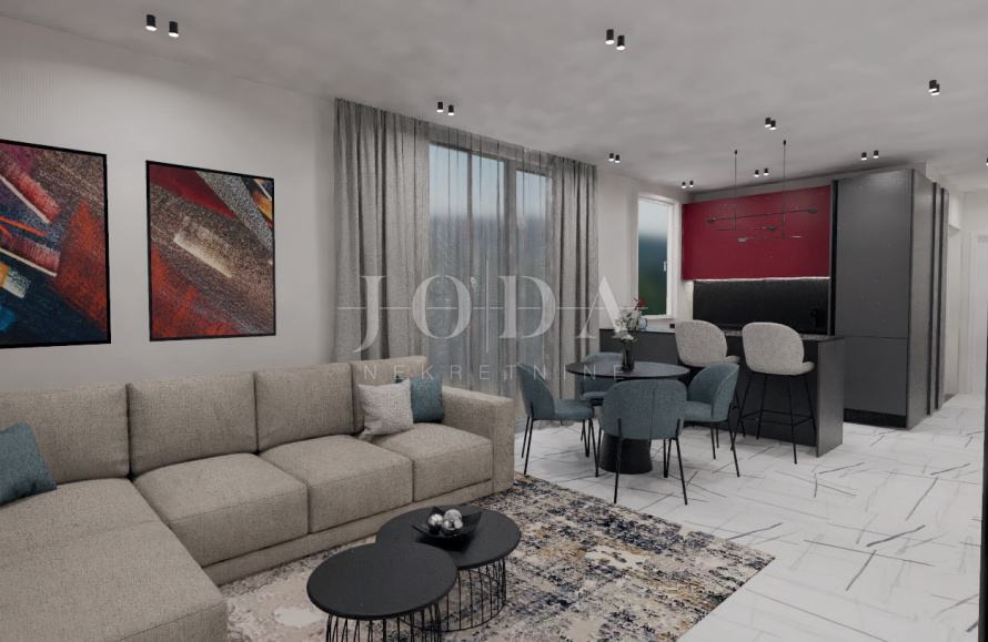 Dvosobni stanovi su koncipirani tako da se lako mogu podijeliti na dva(studio te jednosobni),sa balkonima što ih čini idealnima za turistički najam pogotovo u mjestu kao što je Novalja,koja ima odličnu popunjenost.