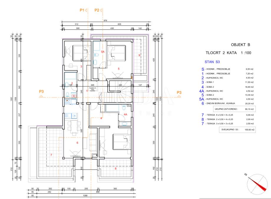 Dvosobni stanovi su koncipirani tako da se lako mogu podijeliti na dva(studio te jednosobni),sa balkonima što ih čini idealnima za turistički najam pogotovo u mjestu kao što je Novalja,koja ima odličnu popunjenost.
