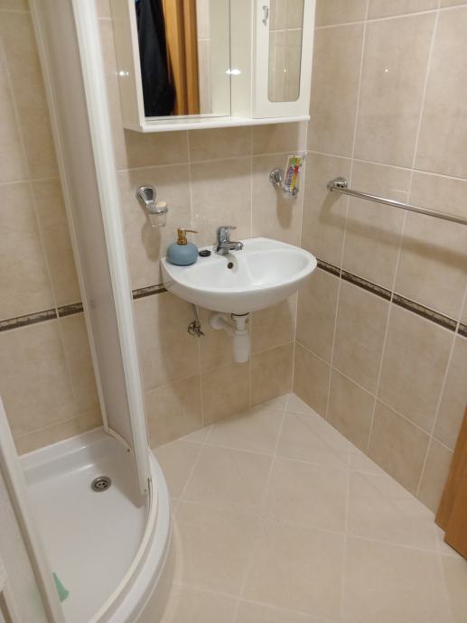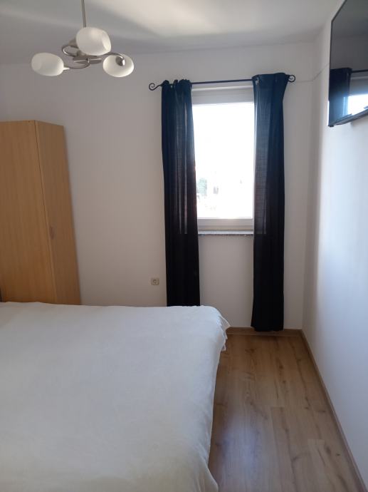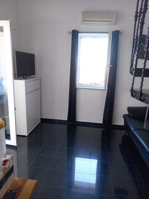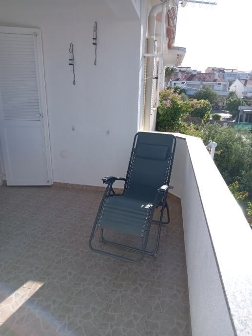 Prodaje se uredan i etažirani trosobni namješten stan sa terasom i pogledom na more, obračunske površine 57m2, (tlocrtno 75m2), na 2 katu, a sastoji se od dnevnog boravaka sa kuhinjom, 2 sobe, galerija(20m2), kupaona WC,natkrivene terase(2xtenda) sa pogledom na more 11m2, okružen zelenilom, dvorištnim zidanim roštiljem.Režije odvojene (struja, voda) sa vanjskim očitavanjem. Pripada mu parkirno mjesto ispred zgrade koje nije u kvadraturi stana. Nalazi se blizu centra i mora.