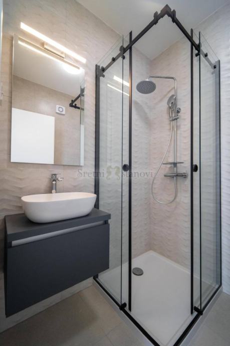 Moderna novogradnja sa ukupno 8 apartmana na zapadnom djelu Novalje, Gaj, na svega 15 minuta laganog hoda do centra grada i 5 minuta do mora i plaže (200 metara od mora). Ovaj se apartman sastoji od 2 spavaće sobe ( od kojih jedna ima privatnu kupaonu), dvije kupaone, prostranog dnevnog djela , terase površine 15,79m2 (neto 7,90m2) ukupne površine 62,01 m2 i 2 vanjska parkirna mjesta površine 25 m2 (neto 6,25 m2) sveukupne površine 94,90 m2 (neto za obračun 69,51 m2) . Stan, je klimatiziran kvalitetnim klima uređajima za grijanje i hlađenje koji su smješteni u dnevnom boravku i svakoj sobi a u kupaonama je ugrađeno podno grijanje. Korištena je i ugrađena vrhunska tehnologija i oprema kako vanjska tako i unutarnja. Stan ima svoja dva vanjska parkirna mjesta u okućnici. Cijena 3.330,00 eur/m2. U cijenu je uključen PDV tako da kupac ne plaća porez na promet nekretnina. Čisto vlasništvo i uredni papiri gradnje. Zgrada ima uporabnu dozvolu. Stan je odmah useljiv.