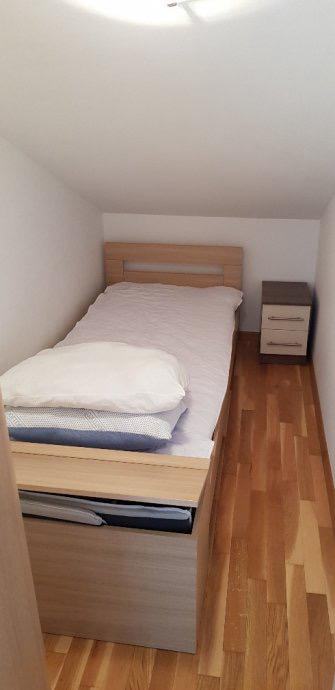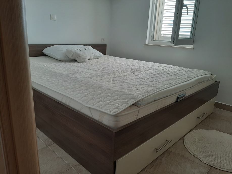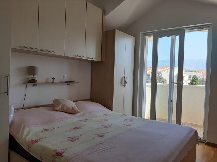 Glavna spavaća soba ima izlazak na lođu s pogledom na Velebit i na veliku terasu te dodatnu malu sobu sa još jednom ležajem.
